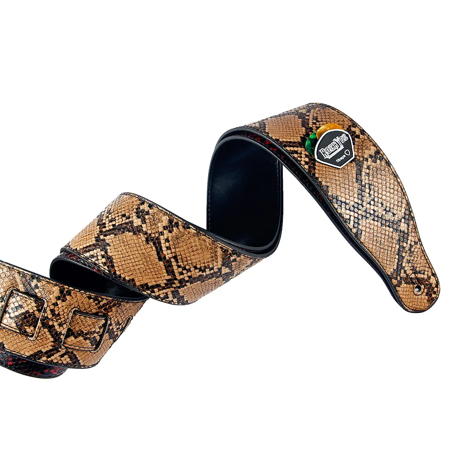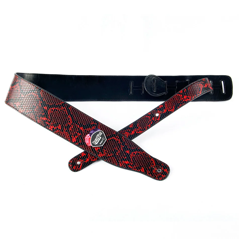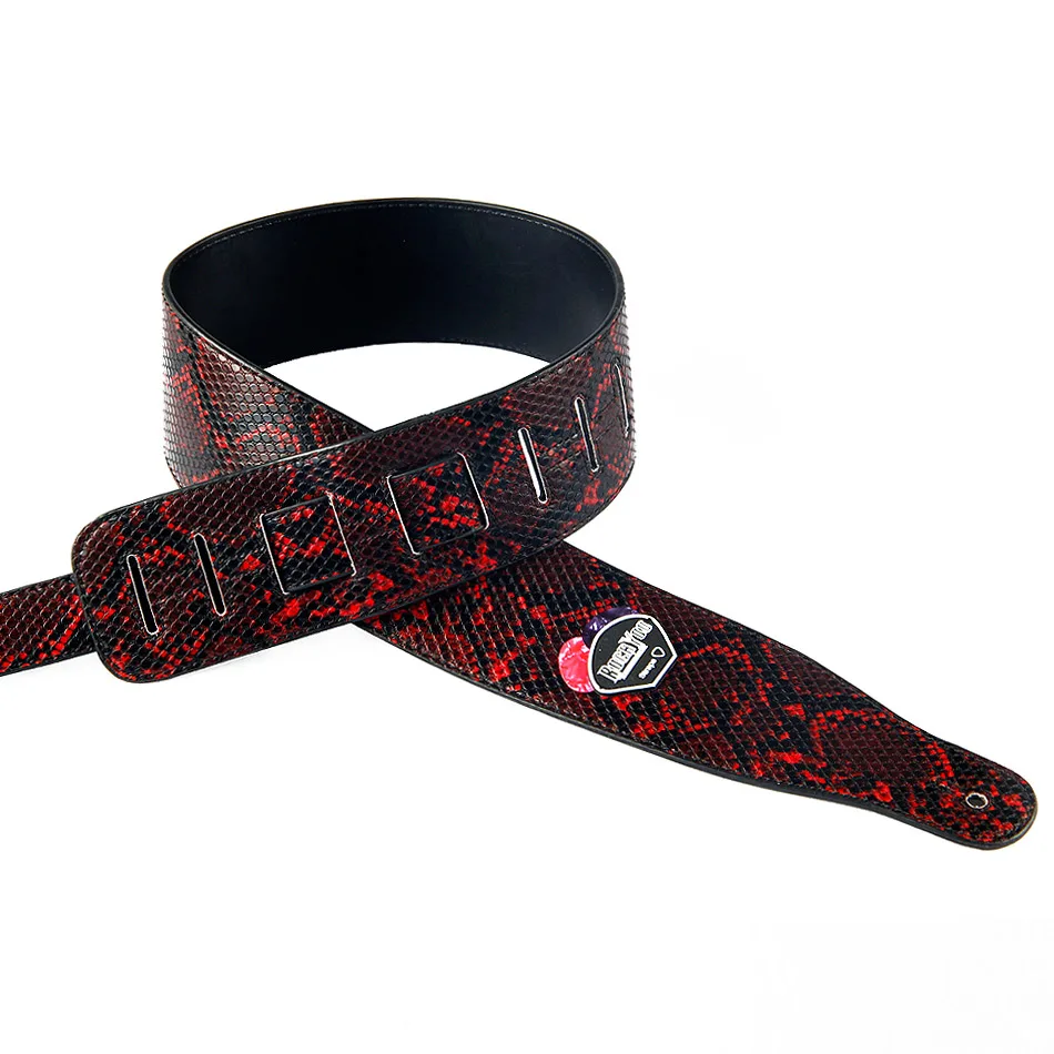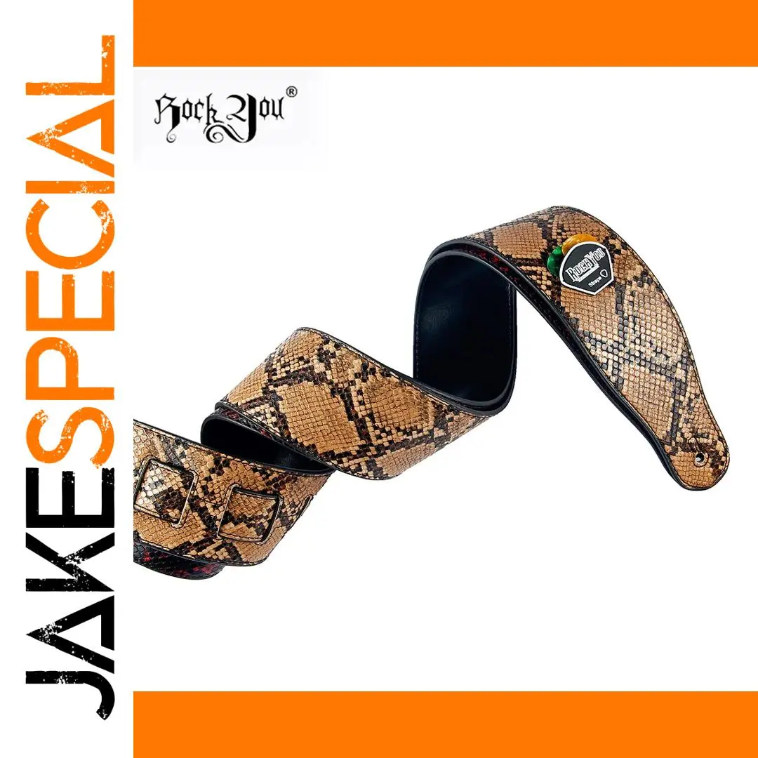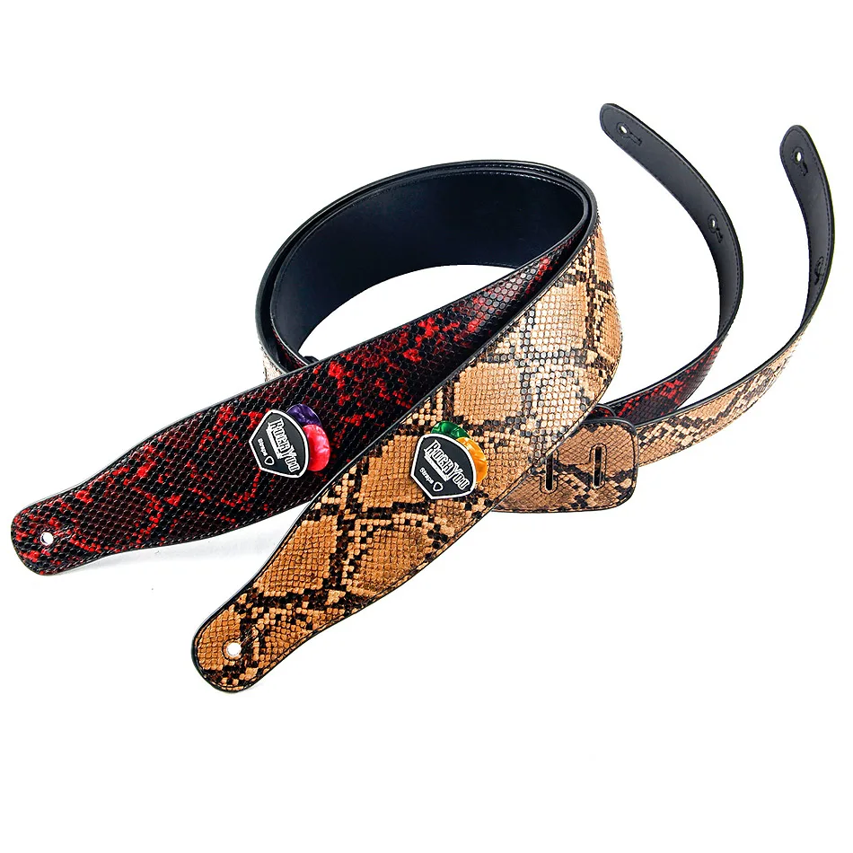 Enhance your guitar experience with this stylish snake pattern guitar strap crafted from durable PU leather. Measuring approximately 7cm wide with an adjustable length of 119cm to 139cm and a fixed length of around 135cm, it features a textured, scaly surface in natural tones of tan, light brown, dark brown, and black for a realistic reptilian look. The strap is available in vibrant yellow and red colors, finished with neat black trim along the edges, making it a versatile accessory suitable for acoustic, electric, and bass guitars. Its high-quality construction ensures both style and durability for passionate musicians.