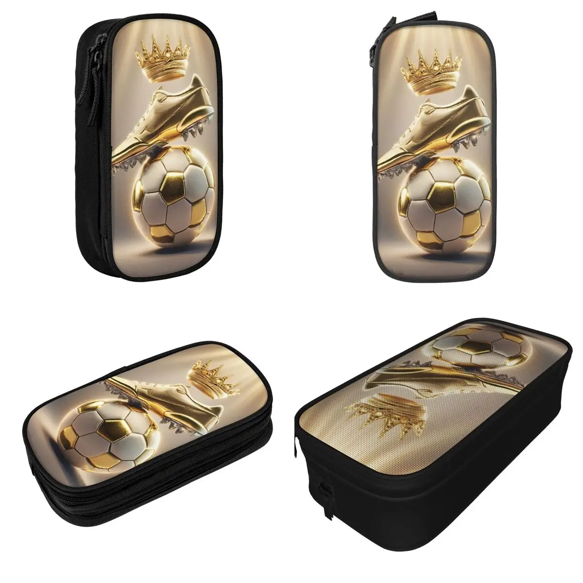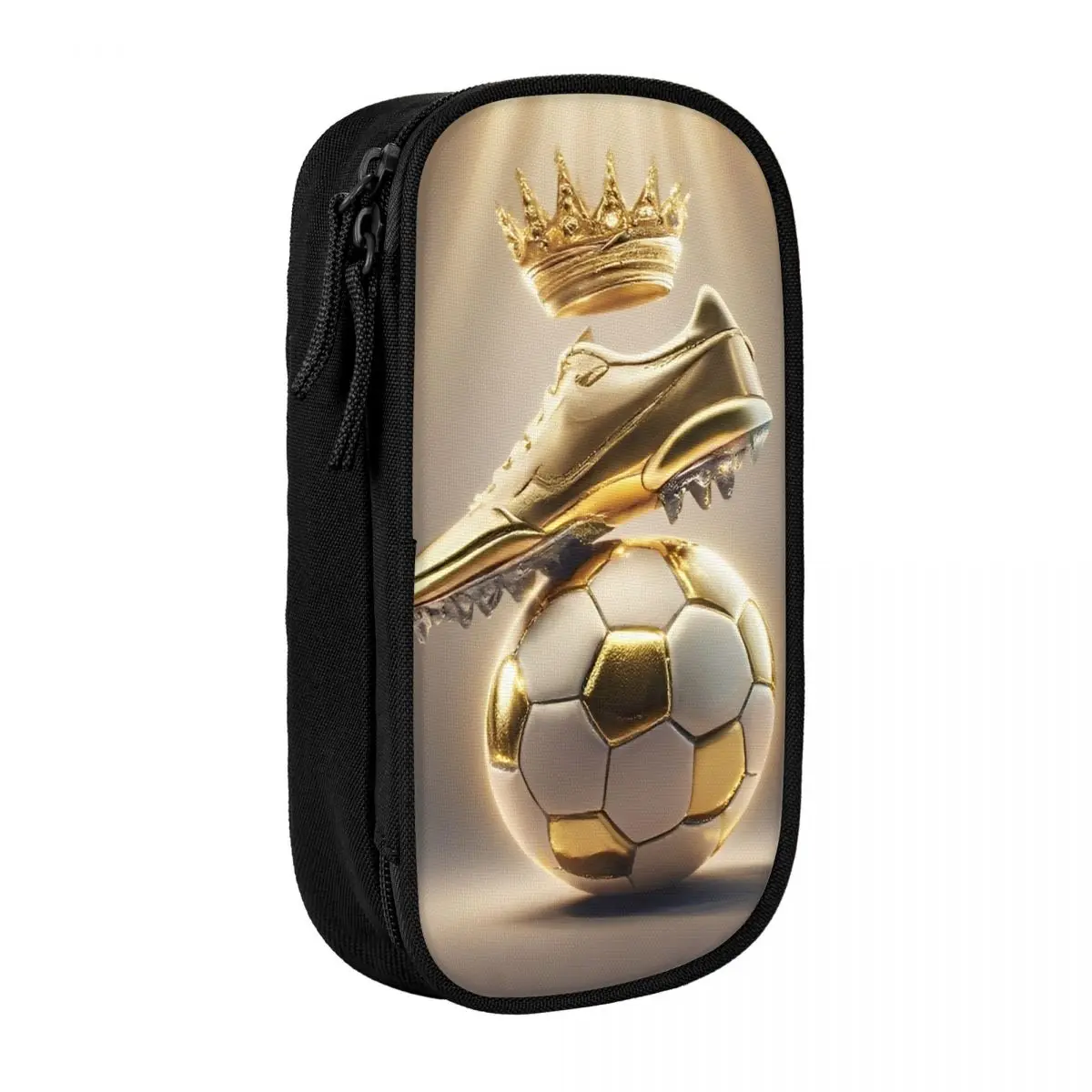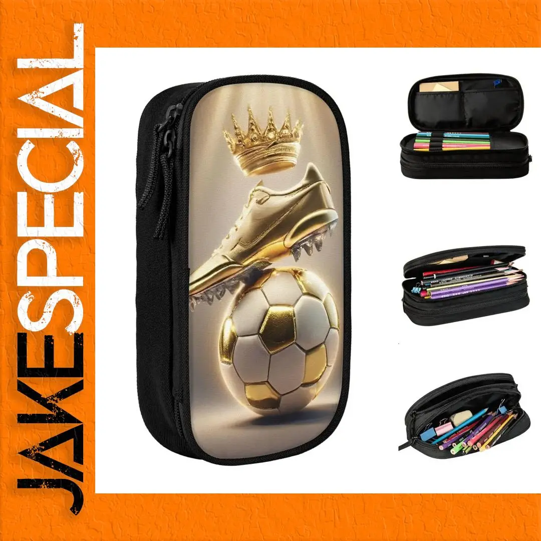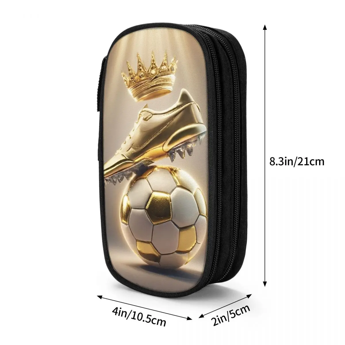 The Soccer With Golden Crown Pencil Case combines functionality and style, featuring a sleek black leather exterior with an eye-catching graphic of a golden soccer shoe and a crown that symbolizes victory. Designed for students and soccer enthusiasts, it boasts a spacious interior with various compartments to neatly organize pens, pencils, and other school supplies. The durable leather construction ensures longevity, while its large capacity makes it perfect for school or office use. Embrace your passion for soccer and stay organized with this sporty and practical pencil case, making it an essential addition to your collection of school supplies.