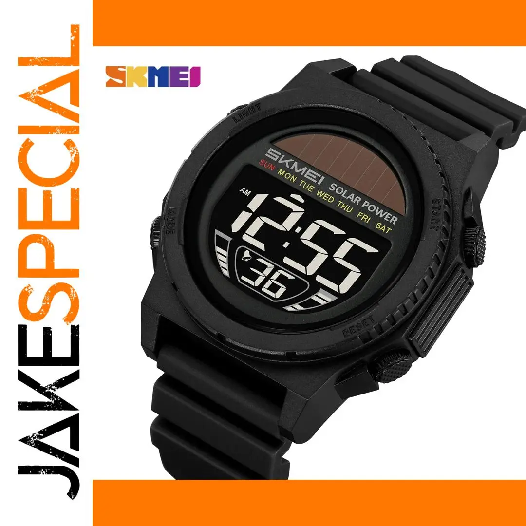 Elevate your style and functionality with the SKMEI JS-SKEWSDSSP Solar Digital Sports Watch for Men. This remarkable timepiece features solar energy technology for extended battery life, ensuring you’re always on time without the hassle of constant charging. With a 5Bar waterproof rating, you can confidently wear it during water activities. The digital display provides easy access to time, date, and week, complemented by a convenient LED backlight. Additional features like chronograph and alarm settings help you manage your day efficiently. The durable PU band guarantees comfort and a secure fit, making this watch your perfect companion for any adventure.