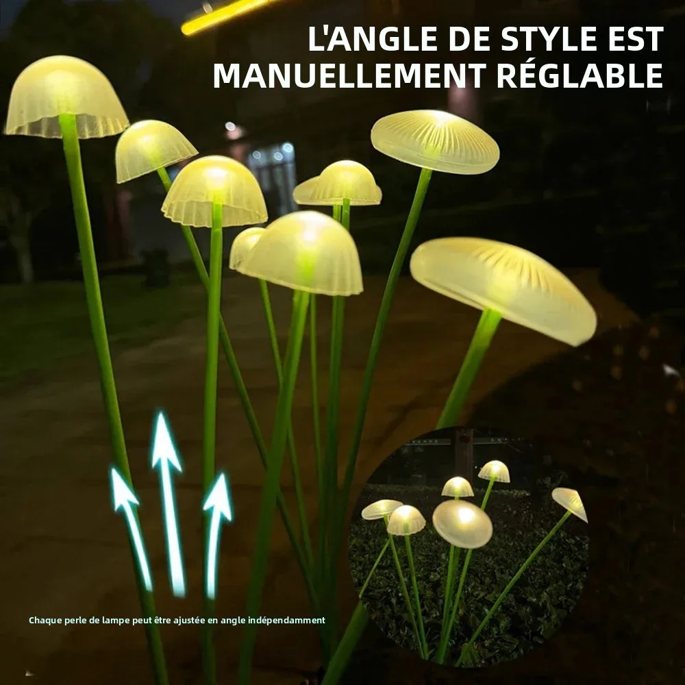 Imagine transforming your garden or patio into a whimsical wonderland with these enchanting solar mushroom lights. Their translucent, umbrella-shaped caps emit a gentle, warm white or vibrant RGB glow, creating a cozy and magical atmosphere. The realistic ridged texture under each cap adds a touch of nature-inspired detail, while the slender, green stems evoke delicate mushroom stalks. Thanks to the soft, flexible wires, these lights sway gracefully in the wind, mimicking the gentle movement of mushrooms or floating jellyfish. Powered by environmentally friendly solar energy, they charge during the day and provide 8-12 hours of beautiful illumination at night, enhancing any outdoor space with charm and warmth.