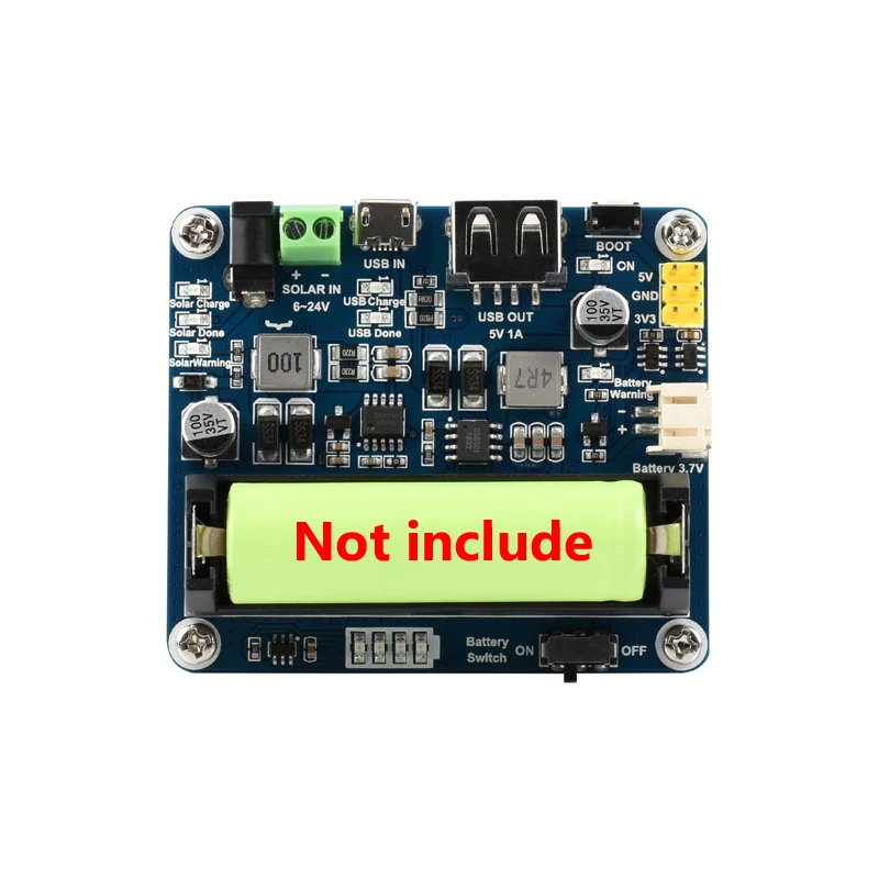 - Includes onboard high-capacity electrolytic and ceramic capacitors for reduced ripple, plus multiple LED indicators for monitoring solar charging, battery status, and protection alerts.