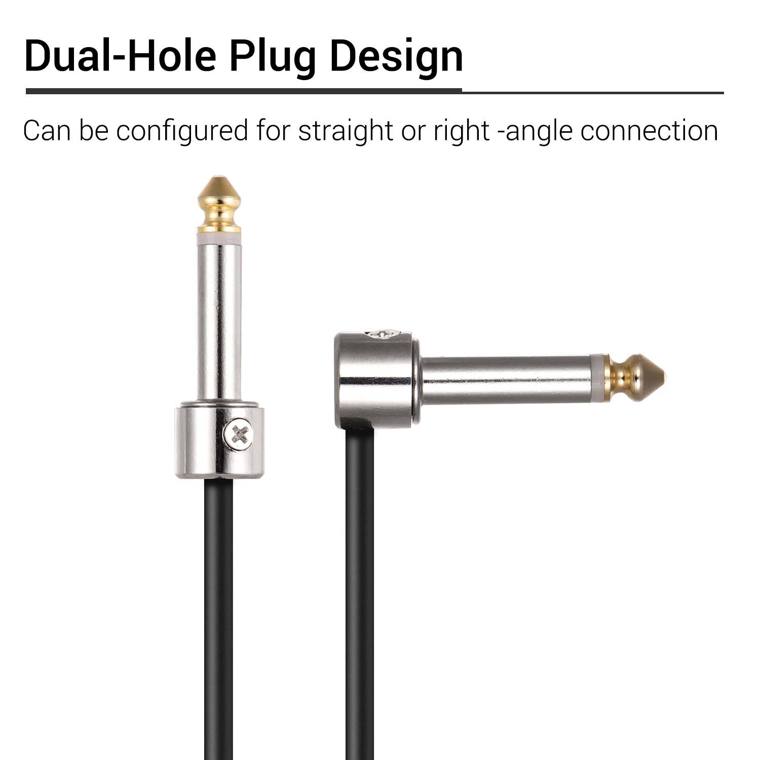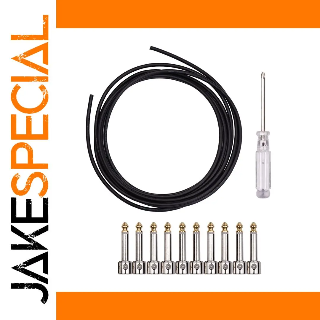 Elevate your DIY guitar pedal setup with this professional solderless patch cable kit, featuring 10 sleek, chrome-finished mono plugs with a 3/8mm internal diameter and a 4cm height, designed for space-efficient connections. The 3-meter black cable offers low capacitance for transparent, full harmonic signal transmission, ensuring your tone remains pure. The kit includes a mini screwdriver to effortlessly assemble and secure each plug, which can be configured for straight or right-angle connections, making your pedalboard look professional and compact. Perfect for customizing cable lengths with quick, solder-free installation, this kit is a must-have for serious musicians seeking reliable, high-quality connectivity.