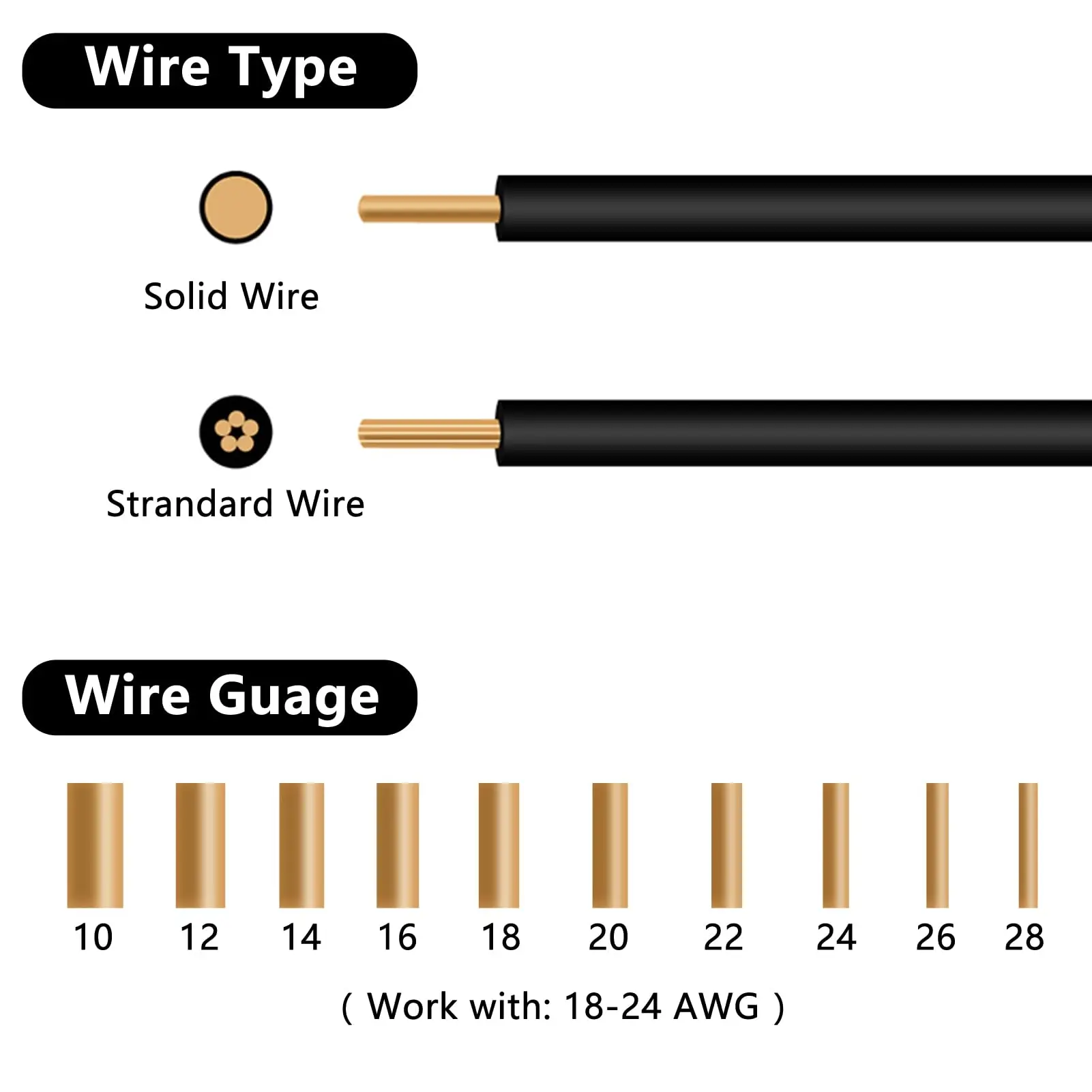 Imagine effortlessly connecting wires in your electrical projects with this set of solderless wire connectors. Designed for quick, tool-free installation, these connectors allow you to securely join or branch wires without the need for soldering or complicated tools. Their transparent housing makes it easy to verify proper wire placement and connection integrity. Perfect for low-voltage applications, they ensure reliable, vibration-resistant connections. Whether you're working on custom electronics, home automation, or repair projects, these connectors simplify your workflow. With their versatile compatibility for 14-20 AWG wires and multiple voltage ratings, they adapt seamlessly to various needs. Investing in these connectors means gaining confidence in the safety and durability of your electrical connections.
