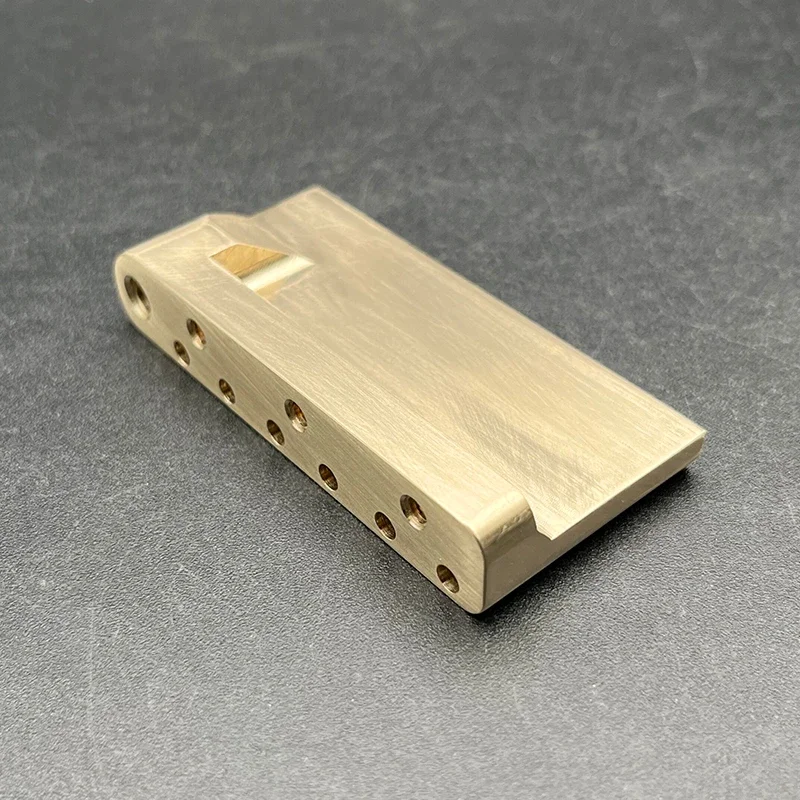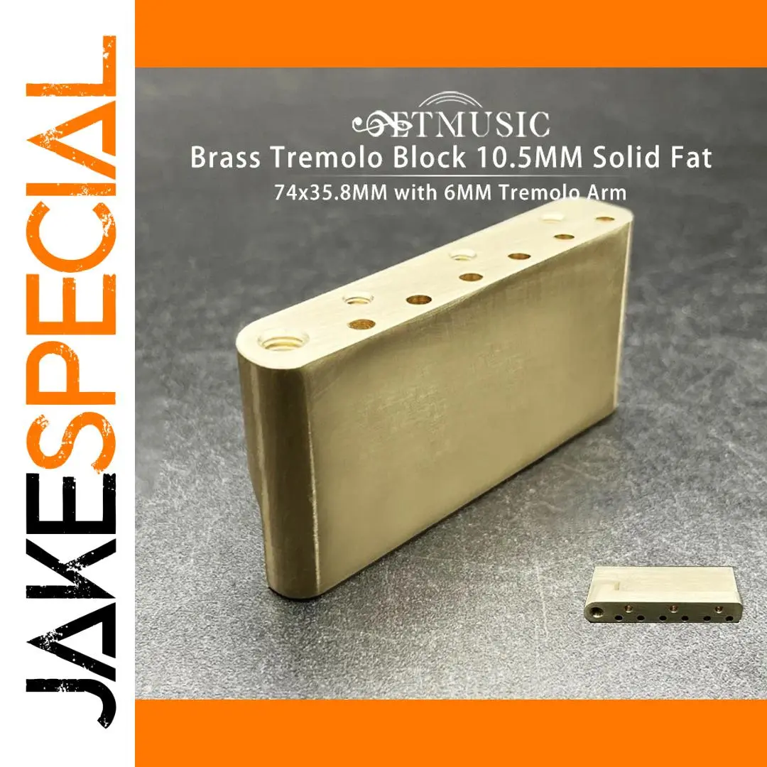 Enhance your electric guitar’s performance with this 74mm x 35.8mm solid brass tremolo block, featuring a 10.5mm thickness and a 6mm tremolo arm socket. Crafted from high-quality brass, it offers increased sustain and tuning stability, compatible with string widths from E to E (52.5mm). Its sleek, minimalist design with evenly spaced threaded holes combines functional durability with refined craftsmanship, adding an industrial yet elegant touch to your instrument. Perfect for standard electric guitar bridges, this component ensures robust performance and a warm, resonant tone. Elevate your guitar setup with a reliable, high-performance tremolo upgrade designed for ultimate stability.