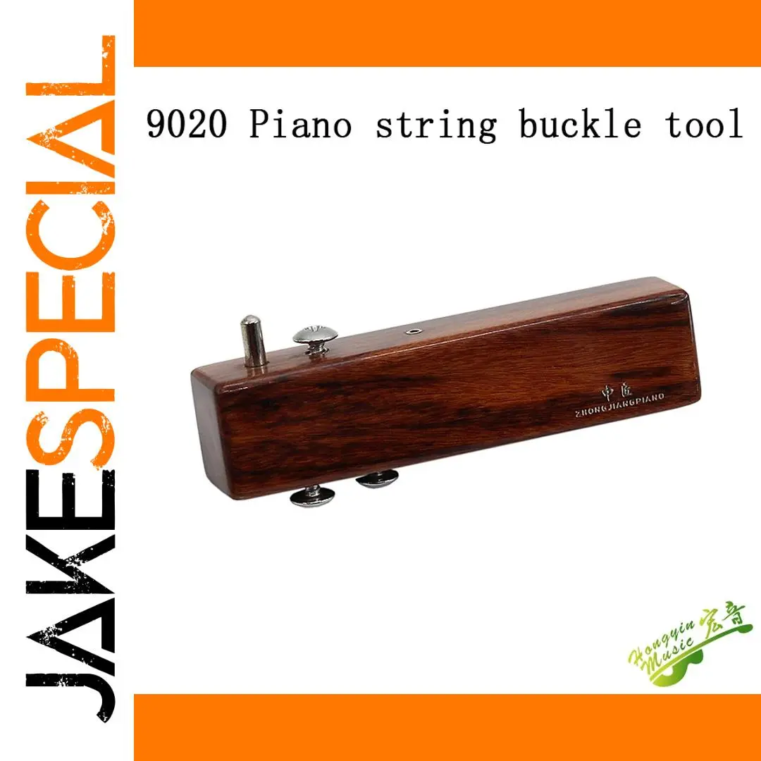 Experience precise piano string tensioning with the Piano String Buckle Tool 9020, crafted from durable solid wood with a polished, dark brown finish that highlights natural grain patterns. Its rectangular, elongated shape combines traditional craftsmanship with functional design, featuring small metal components including a pin, rounded knob, and supports for reliable adjustment. Embossed with Chinese characters and the brand name “Zhong Jian Piano,” this tool offers a classic aesthetic suited for professional or enthusiast use. Compatible with brass and cupronickel strings, it provides a high-quality, reliable solution for maintaining optimal piano performance.