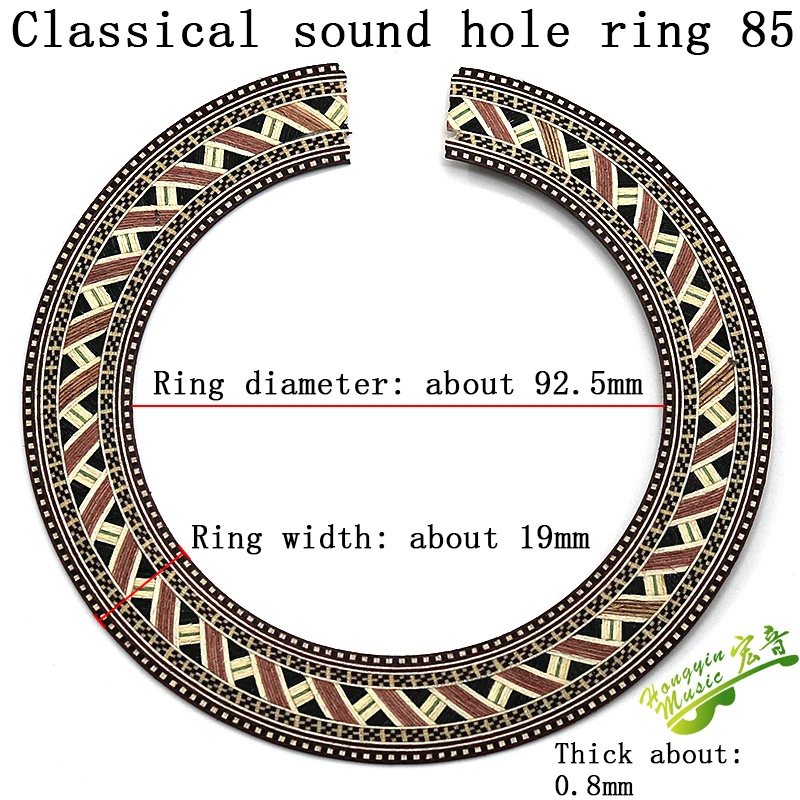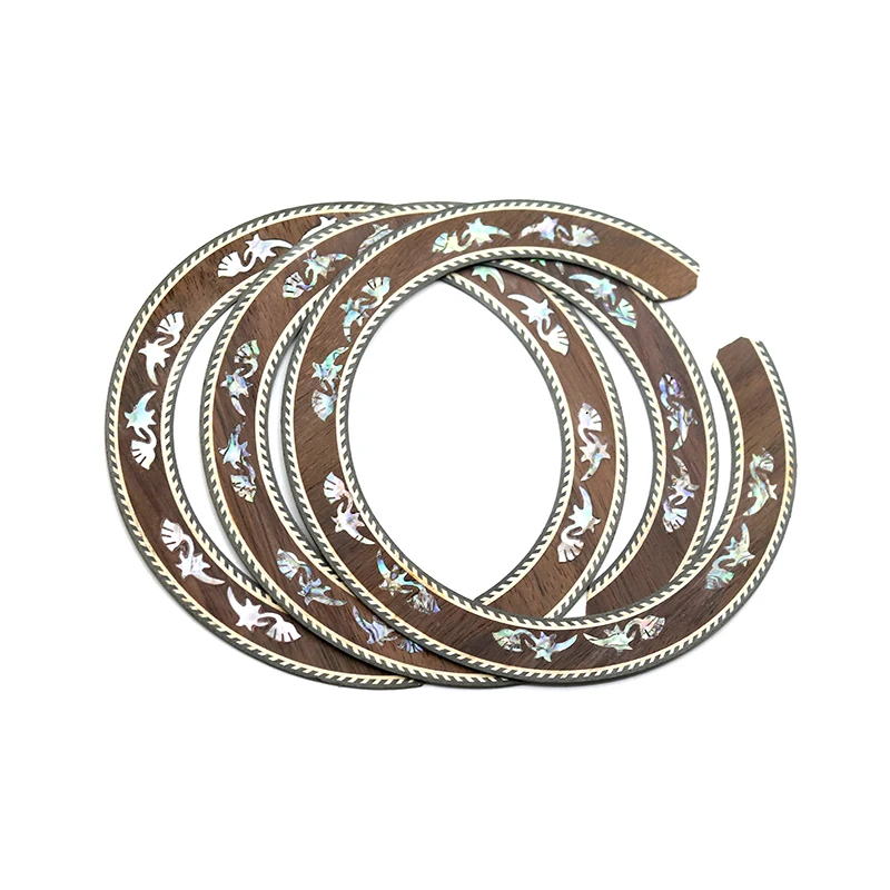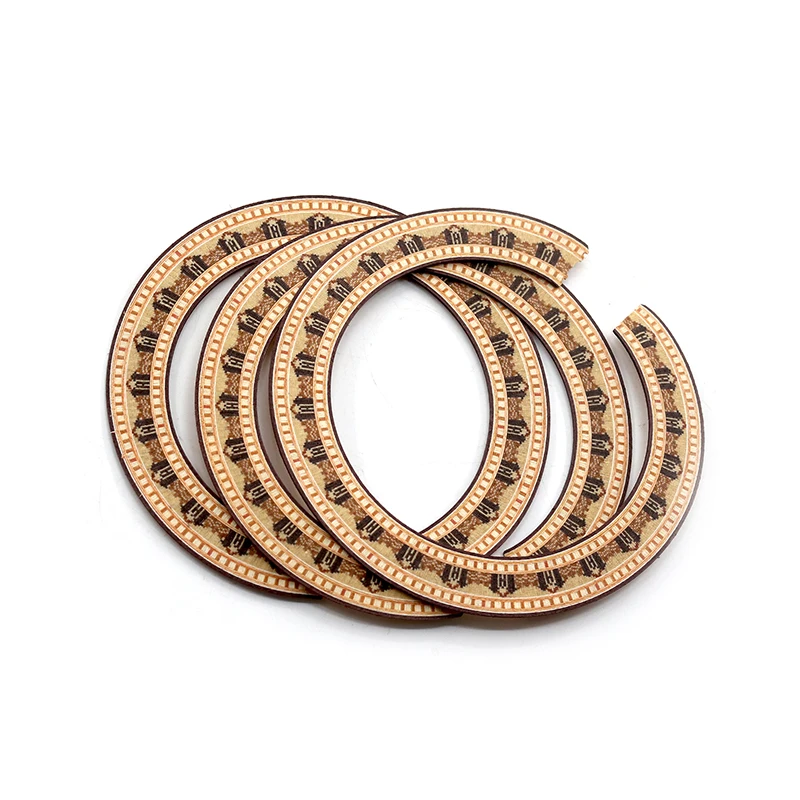 Transform your guitar’s appearance with this beautifully crafted solid wood sound hole circle decal. Perfect for classical, acoustic, electric guitars, and ukuleles, it offers precise fitment and intricate patterns that elevate the instrument's aesthetic. Made from high-quality solid wood, this decal measures about 5mm thick and is designed to be inlaid directly into the guitar panel for a seamless look. It is available in various sizes and radii to match different guitar types, providing a professional finish without the need for glue. Whether you want a traditional or decorative touch, this decal adds a personalized, artistic flair to your instrument. Easy to install and built for durability, it ensures you won't just play the guitar – you'll make it uniquely yours.