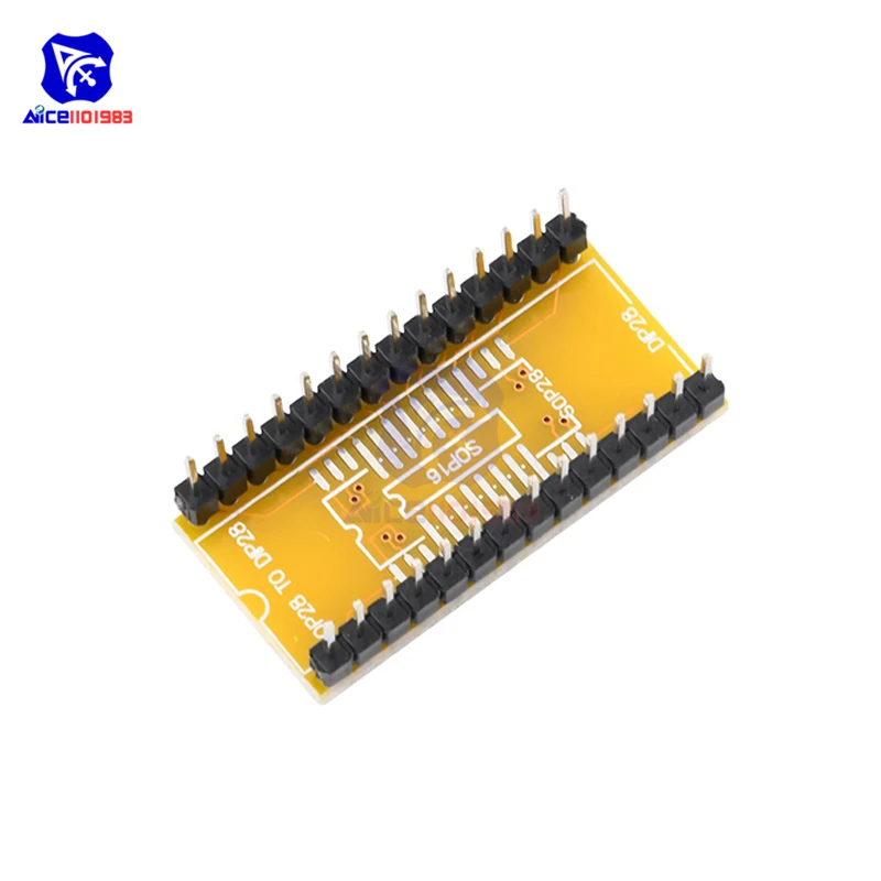Experience seamless integration with this high-quality yellow adapter PCB crafted for converting surface-mount packages like SOP16, SOP28, and SSOP28 to through-hole DIP16 and DIP28 formats. Its durable design features precisely drilled 0.6mm holes along the edges, making installation straightforward on various circuit boards. The sleek, colorful surface coupled with crisp white silkscreen markings ensures easy identification and assembly, reducing error risks during soldering. Two neatly aligned black pin headers extend vertically on either side, providing excellent conductivity and a clean aesthetic. Whether you're prototyping or repairing, this adapter set simplifies your workflow, allowing easy testing and replacement of surface-mount chips on your breadboard or circuit assembly. Reliable and ready for professional use, it’s an essential tool for electronics enthusiasts and technicians alike.