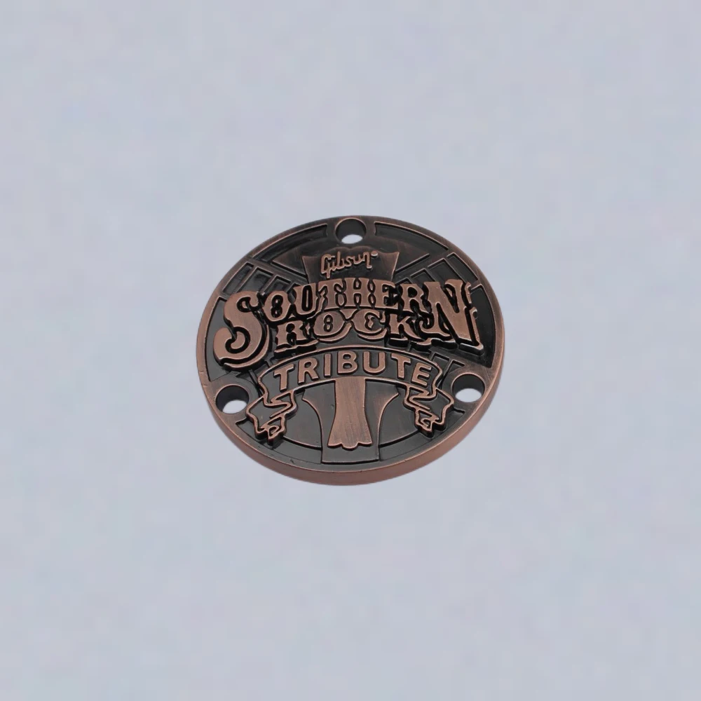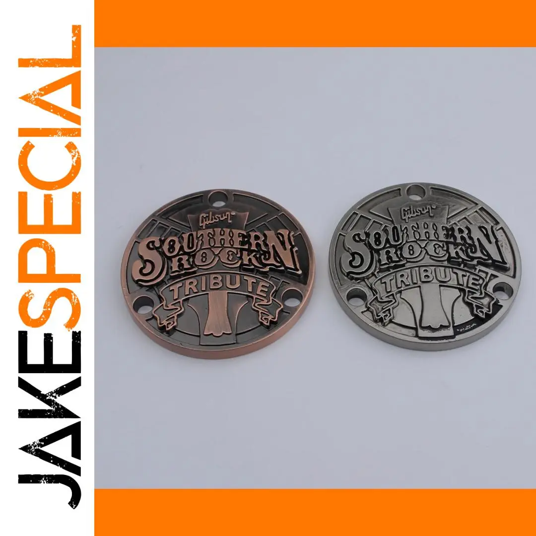 Transform your guitar into a centerpiece of style and sound with this Southern Rock Tribute Toggle Switch Guitar Back Metal Cover. Crafted in two stunning finishes, the bronze-like version embodies warmth with intricate texturing, while the silvery option offers a sleek, mirror-like shine. Each cover features the bold “SOUTHERN ROCK” and “TRIBUTE” text along with artistic embellishments, creating a stunning visual appeal for any guitar enthusiast. Measuring 54mm in diameter and 5.3mm thick, they fit perfectly with multiple guitar models. Installation is a breeze thanks to the conveniently drilled holes. Enhance your instrument’s aesthetic while celebrating your love for music—this cover is a perfect touch.