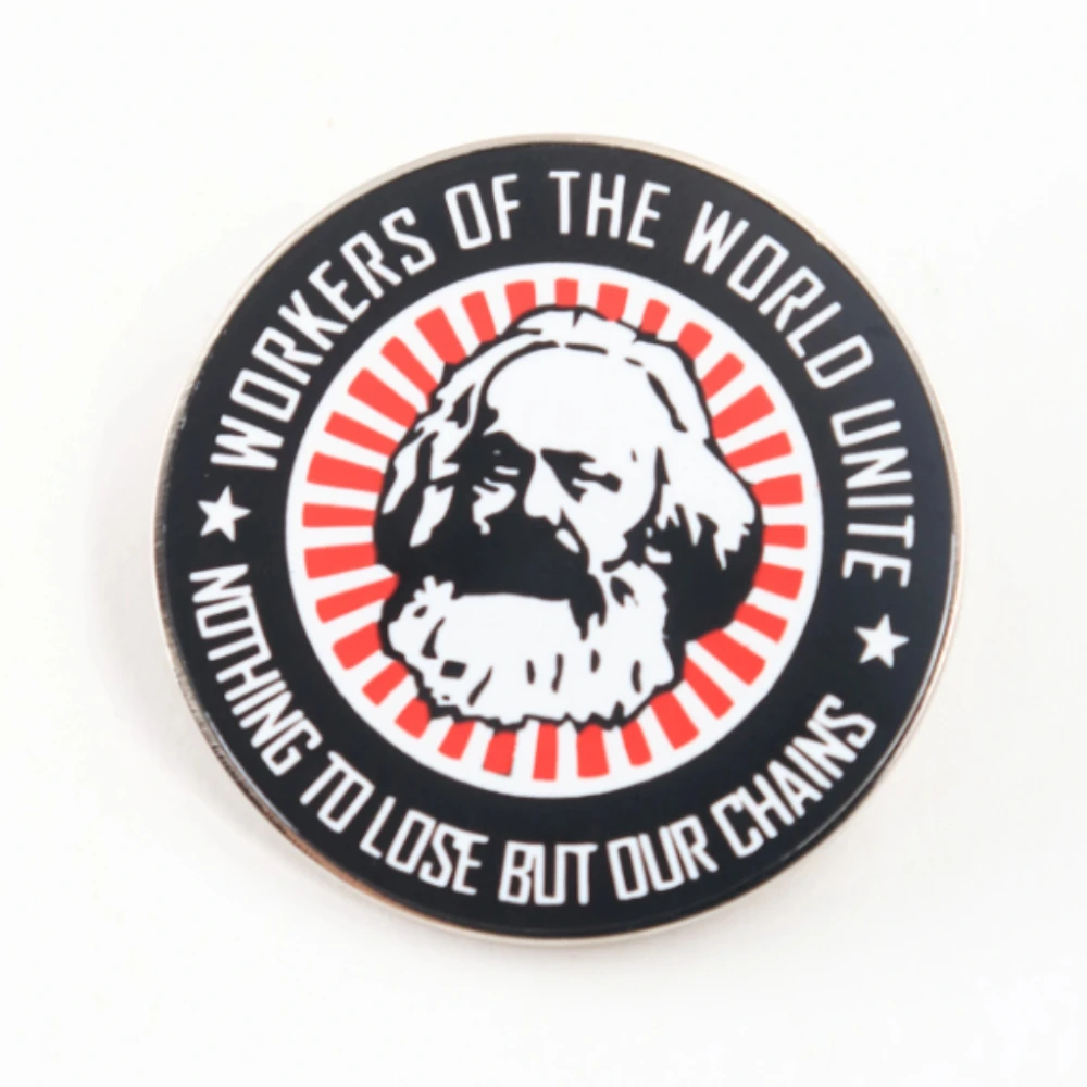 - Renders a vibrant red star and clenched fist with sharp lines and metallic shine in high-quality enamel and metal craftsmanship.