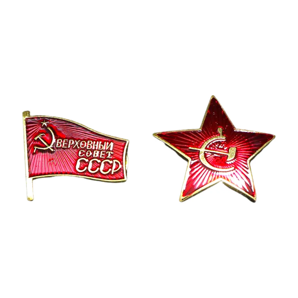 - Each pin has radiating lines that add depth and energy, accentuating Soviet symbols with a glossy finish for a vintage, nostalgic look.