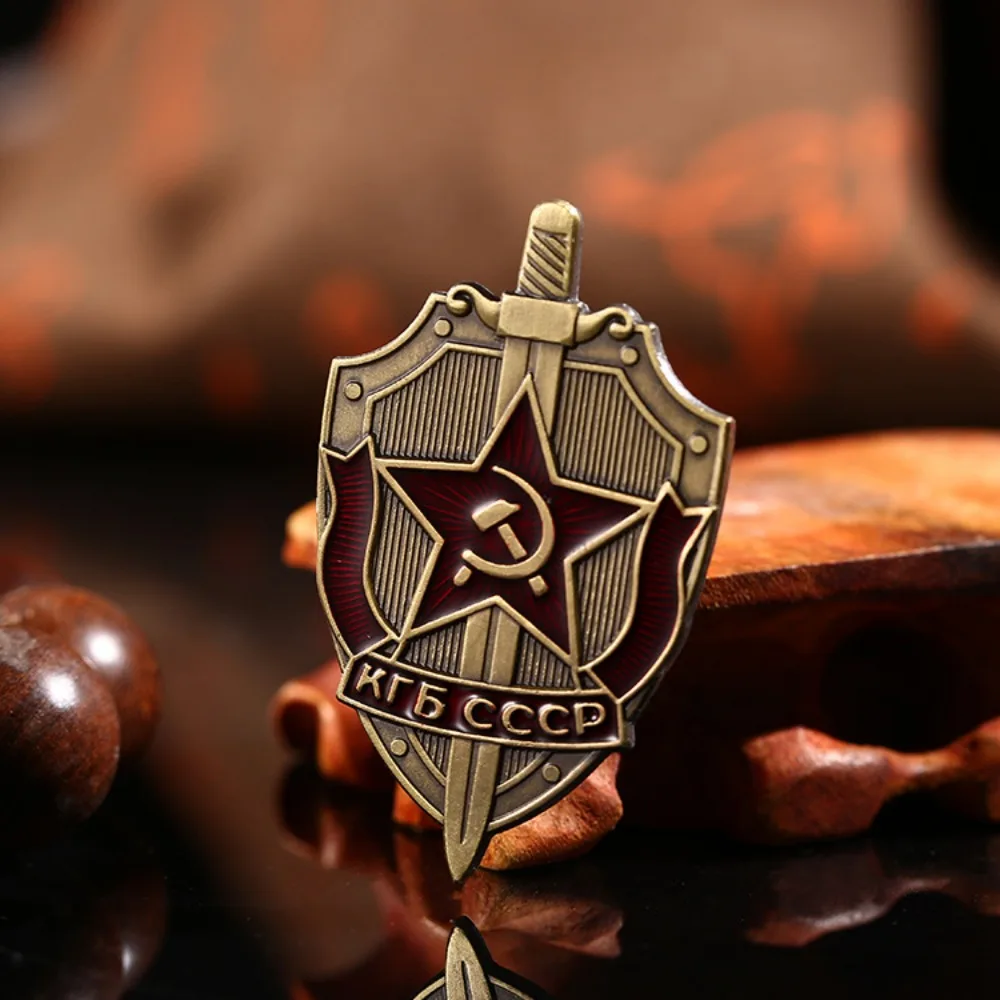 This Russian Soviet USSR order medal badge enamel pin is a stylish collectible that captures historical significance and retro charm. Crafted from a durable metal alloy, it showcases a shield-shaped design with a striking vintage brass or gold-tone base, complemented by red and dark brown accents. The centerpiece features a vivid red star and a hammer and sickle emblem, making it a unique addition to any collection. With a compact size of 5.2 cm in height and 3.2 cm in width, it weighs only 18 grams, offering a lightweight option for daily wear or special occasions. Perfect for cosplay, performances, or as a thoughtful gift for enthusiasts.