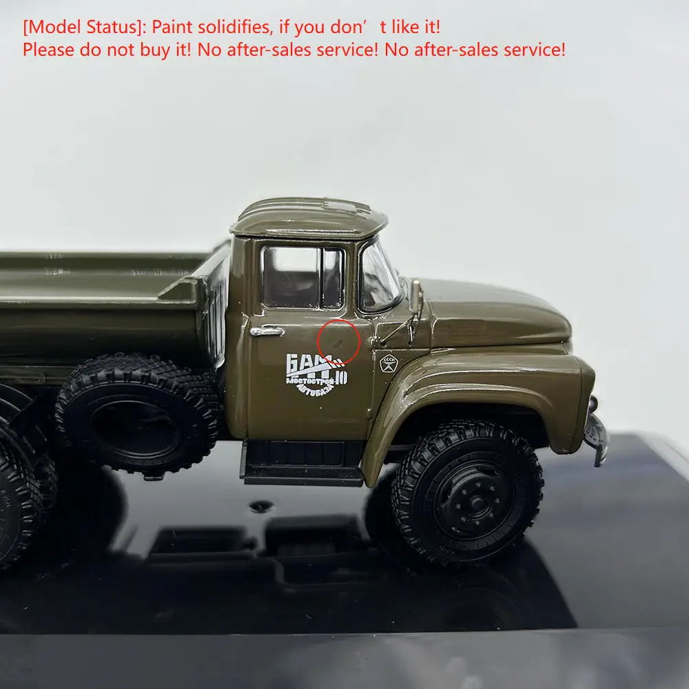 This 1:43 scale die-cast Soviet Jill Mud Bucket Car model is crafted from alloy, plastic, and rubber, featuring a liftable bucket and detailed vintage design with a boxy shape, rounded front grille, circular headlights, and open cargo bed with curved sides. Finished in a military-inspired glossy olive green and decorated with subtle decals, it captures an authentic industrial look despite minor paint flaws due to its defective status. Measuring approximately 1:43 in size, this static collector’s model is ideal for display, gifts, or decoration for enthusiasts aged 14 and above. Note that it’s not a toy, contains no batteries, and is intended solely for collection and aesthetic appreciation.
