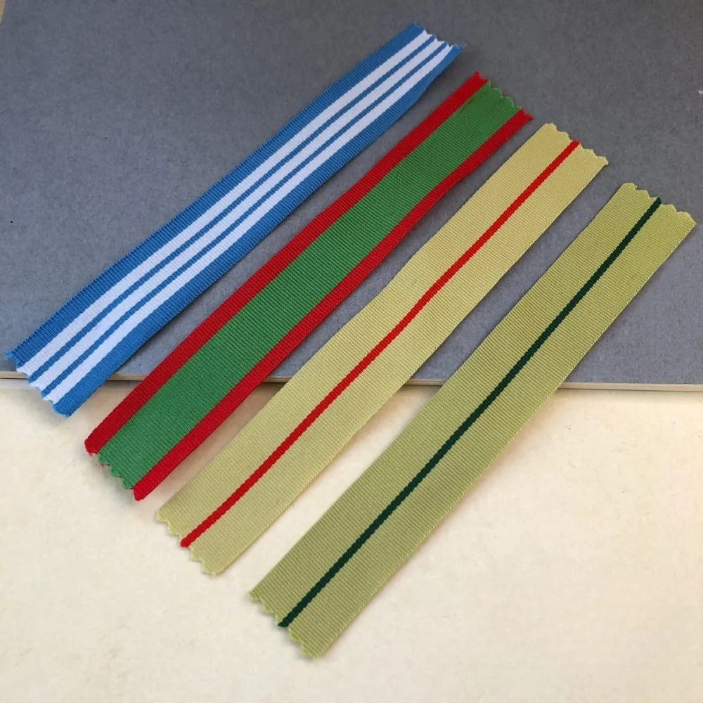 Transform your display with this stunning Soviet-style medal belt ribbon. Crafted from high-quality textile and fabric, this vintage-inspired accessory features vibrant, contrasting colors and meticulously zigzag-cut edges that prevent fraying. Its retro and nostalgic design evokes a classic, patriotic aesthetic, perfect for commemorative purposes or collection displays. The ribbons are rectangular and slim, with a smooth, slightly shiny finish that subtly reflects light, adding a refined touch. Available in an array of colors—from rich greens and vibrant yellows to deep blues and striking reds—each ribbon can be customized to suit your personal or historical preferences. Whether for reenactment, decoration, or memorabilia, this ribbon combines historical charm with durable craftsmanship.