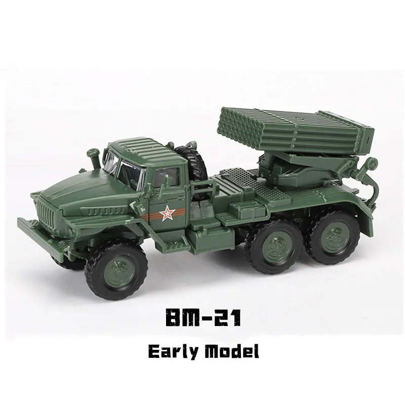 Step into the world of military history with this detailed assembly model set featuring Soviet-era missile and flamethrower systems. Crafted with precision, these 1:72 scale models measure approximately 10.3 centimeters in length and showcase authentic surface details, including panel lines, rivets, and textured surfaces. The set includes four color variations—BM21 1, BM21 2, TOS1 3, and TOS1 4—to highlight different camouflage and design features. Made from durable plastic, each piece is carefully assembled to emphasize realism, from the tracked chassis to the missile containers with insignia. Perfect for collectors and enthusiasts, this set offers immersive insights into Soviet military equipment, combining quality craftsmanship with historical accuracy.