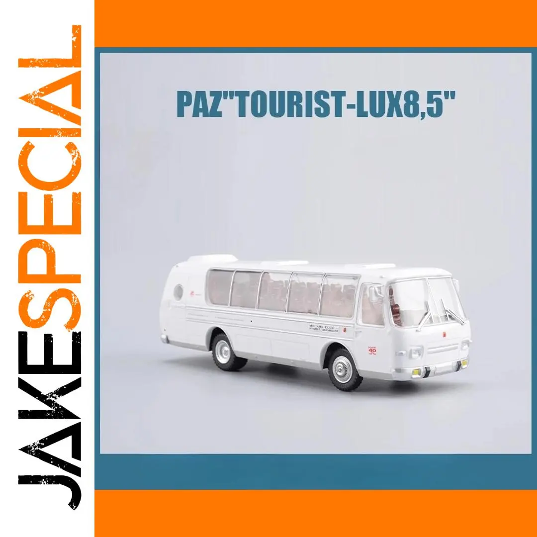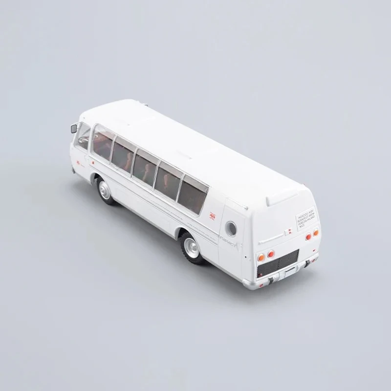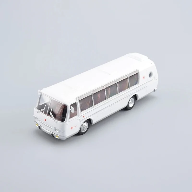 This 1/43 scale static model of the Soviet Pavlovsk bus, PAZ-Tourist-Lux8.5, is crafted from detailed alloy and ABS plastic, capturing the vintage aesthetic with clean white exterior, large curved windshield, transparent side windows revealing interior seating, and black wheels with silver hubcaps. Sized proportionally to a real bus, it features subtle roof details and realistic front bumper, headlights, and grille. Designed for adult collectors and enthusiasts, it makes an excellent display piece or gift. Suitable for ages 14 and above, this non-electric, battery-free model emphasizes authenticity and craftsmanship, perfect for adding a touch of Soviet transportation history to your collection.