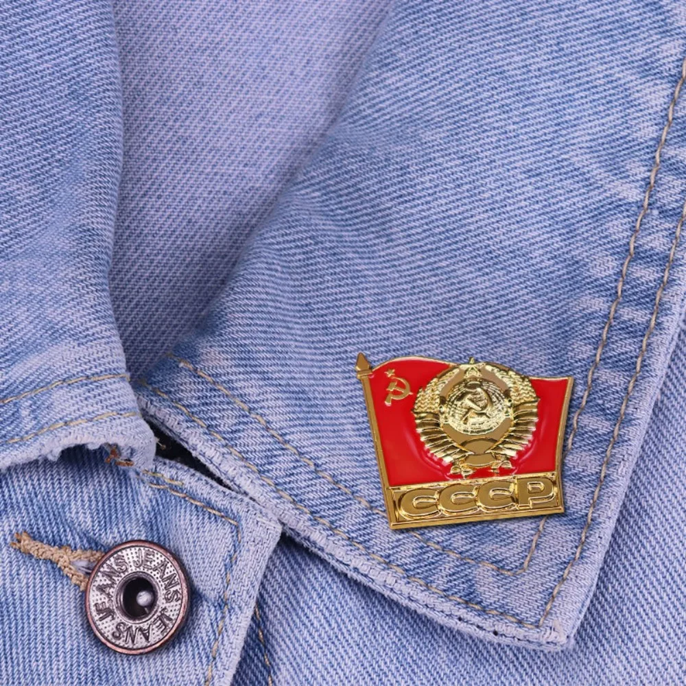 This Soviet Red Flag enamel pin is a stunning representation of history, perfect for those who appreciate vintage and retro styles. Crafted from a durable alloy, it features a vibrant red backdrop with a gently waving design, reminiscent of the iconic flag. The gold-colored emblem showcases a sickle and hammer flanked by a wreath, symbolizing industry and agriculture. At the top, a small gold star enhances its Soviet theme, while the bold “CCCP” text at the bottom adds an authentic touch. Measuring approximately 3cm in height and 2.8cm in width, it's ideal for jackets, backpacks, hats, or your DIY clothing projects, embracing a unisex appeal that resonates with individuals of all preferences.
