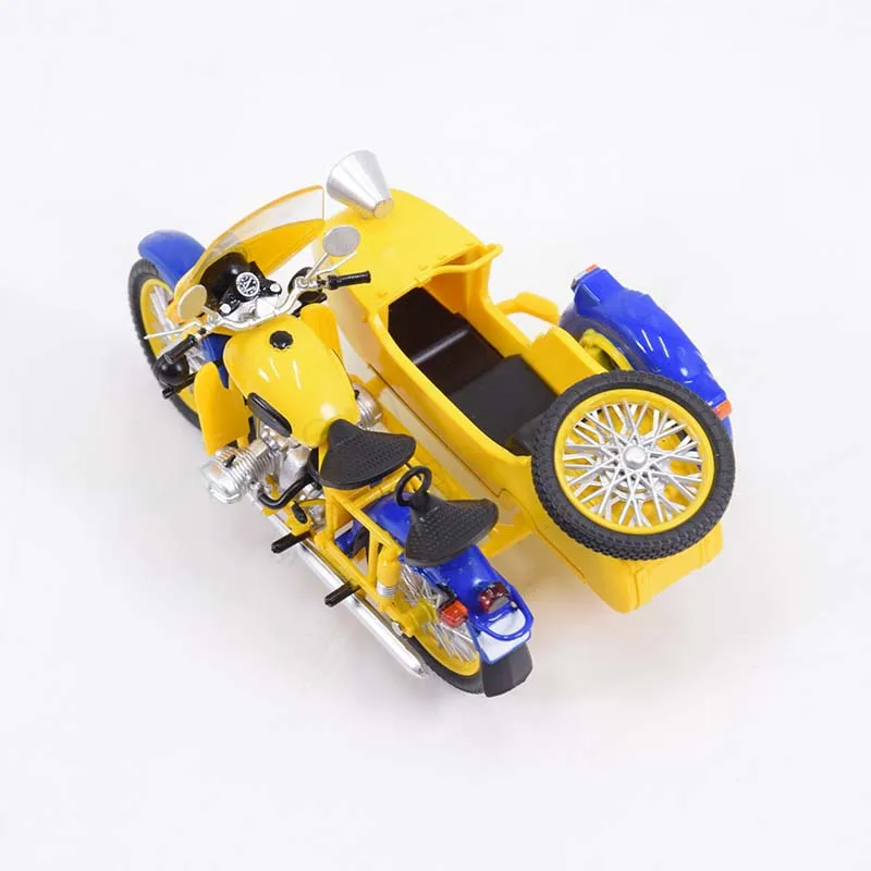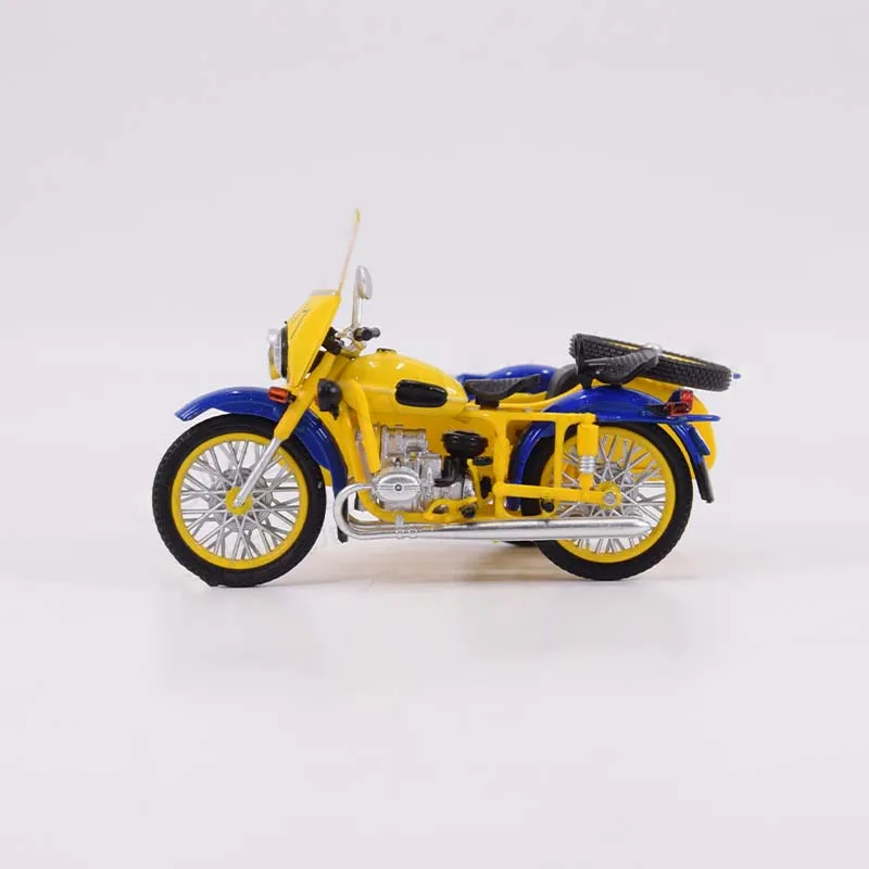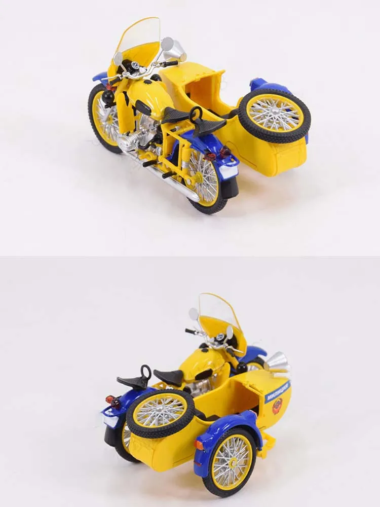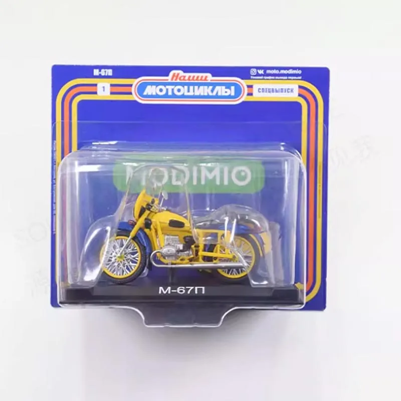 Step into a world of detailed miniature craftsmanship with this striking Soviet Traffic Police Patrol Car M-67P 1/24 scale model. Measuring about 9 cm long, 6.5 cm wide, and 4.5 cm high, this collectible captures the bold aesthetic of vintage police motorcycles. The vivid color scheme of bright yellow and deep blue creates a captivating visual contrast, reflecting the authoritative and stylish presence of the original vehicle. Made from durable plastic with refined metal components, this model showcases intricate detailing from the rounded headlamp to the textured black seat and silver exhaust pipe. Its realistic design makes it an impressive display piece or gift for enthusiasts who appreciate finely crafted miniatures with eye-catching colors and authentic accents.
