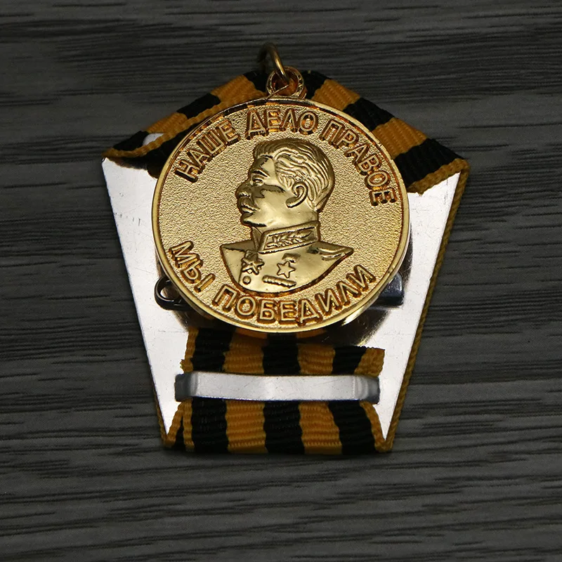 - Encircled by Cyrillic inscription that emphasizes the valor and righteousness of the Soviet patriotic cause, with finely raised characters providing a textured contrast.