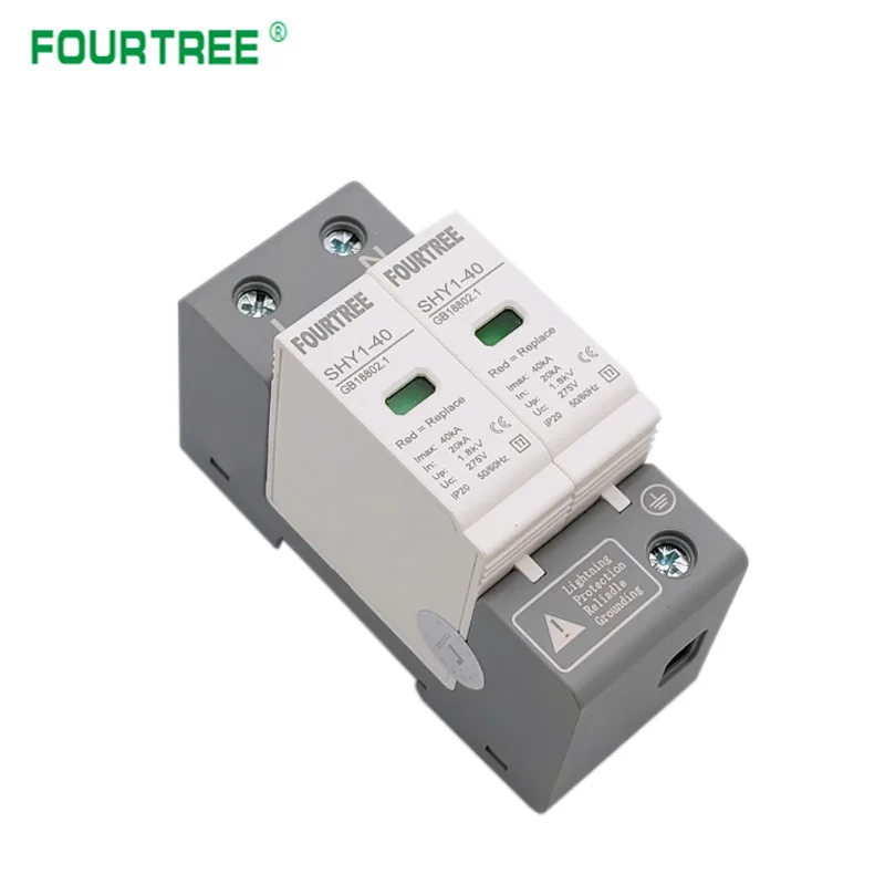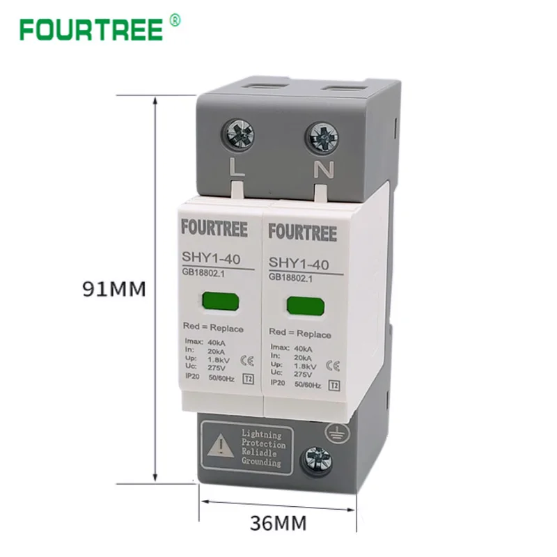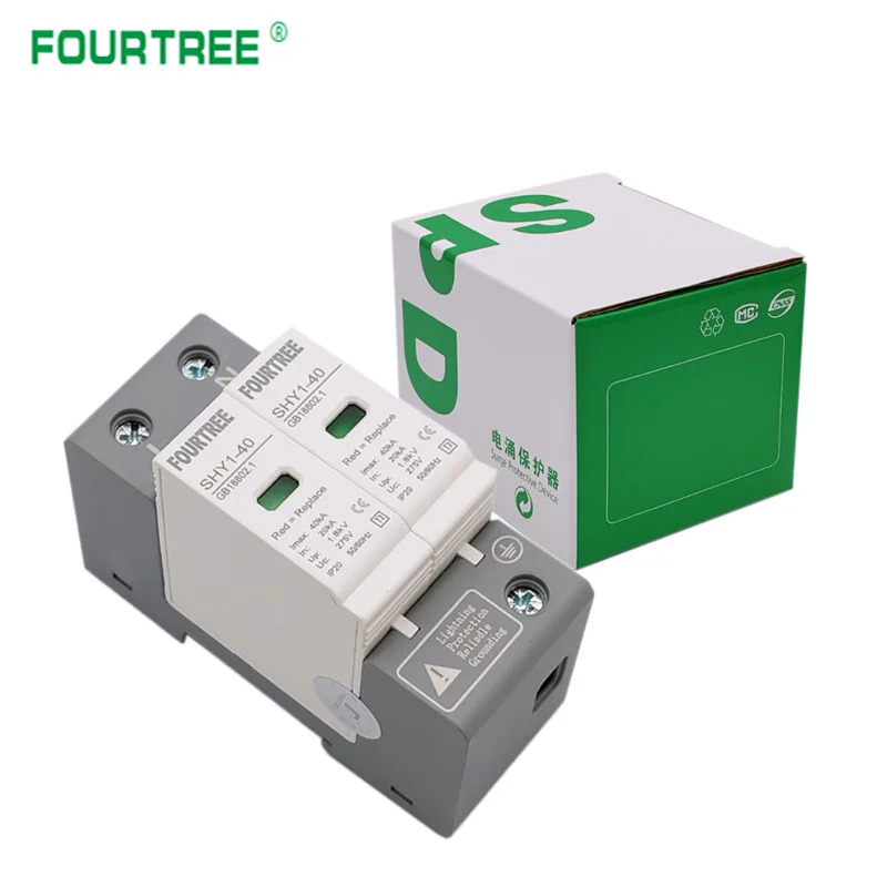 The SPD AC 2P Surge Protection Device is a reliable solution for safeguarding your electrical systems and appliances against lightning and instantaneous over-voltage. It features a 2P (1P+N) configuration with protection capacities of 10-20KA, 20-40KA, or 30-60KA, operating at working voltages of 230V, 275V, or 385V. With a rapid response time of less than 25ns, this plug-in type low-voltage arrester is designed for easy installation on a 35mm DIN rail and is rated with an IP20 protection degree, ensuring practicality for indoor use. Trust this surge protector to enhance the safety and longevity of your electrical devices.