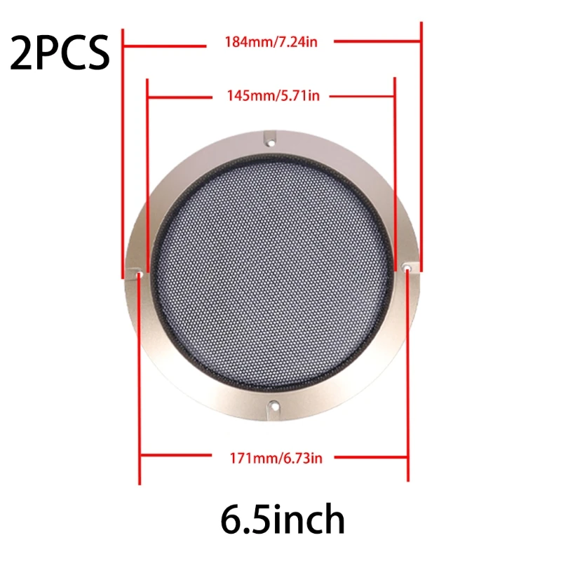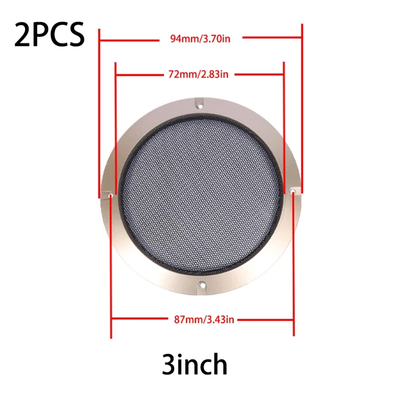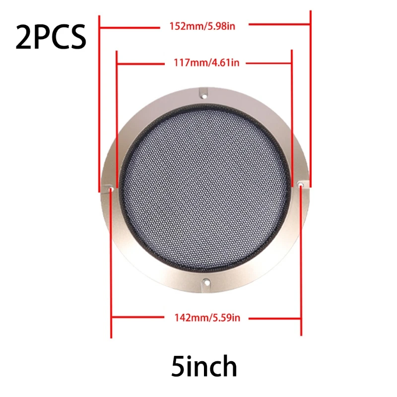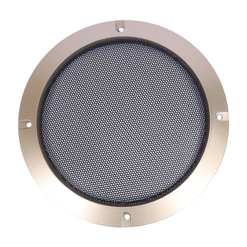 Transform your audio experience with this stylish speaker grille mesh cover designed for subwoofers. Available in multiple sizes including 10, 8, 6.5, 5, 4, and 3″, each cover features a sumptuous gold metal frame that complements any modern decor. The fine black mesh inner section not only allows sound to flow freely but also protects your speakers from dust and damage. Installation is easy with the evenly placed mounting holes. With every detail meticulously designed, this product is perfect for audiophiles seeking both visual appeal and functionality in their sound system setup.