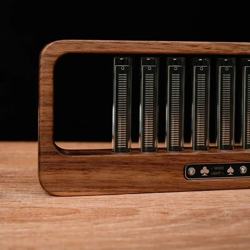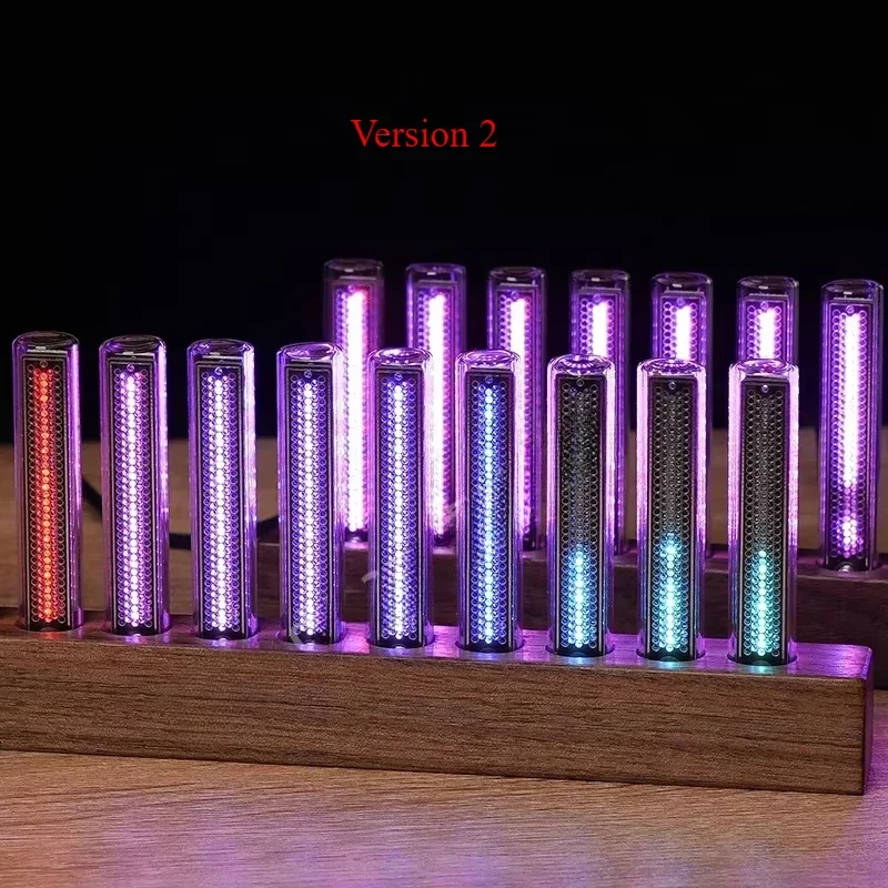 Transform your space with this sophisticated spectrum display LED ambient light. Crafted with a sleek black walnut CNC base and arranged with 11 transparent glass tubes, it offers a captivating blend of natural warmth and vibrant technology. The 240 full-color LED lamps within each tube emit a subtle greenish glow, creating mesmerizing light effects that respond dynamically to sound. Its multiple display modes, including night light and magical effects, can be easily customized via intuitive controls. Whether used as a stylish room accent, ambient lighting for entertainment, or a visual music indicator, this device elevates any environment with its elegant design and advanced audio spectrum capabilities. Experience immersive visual harmony today.
