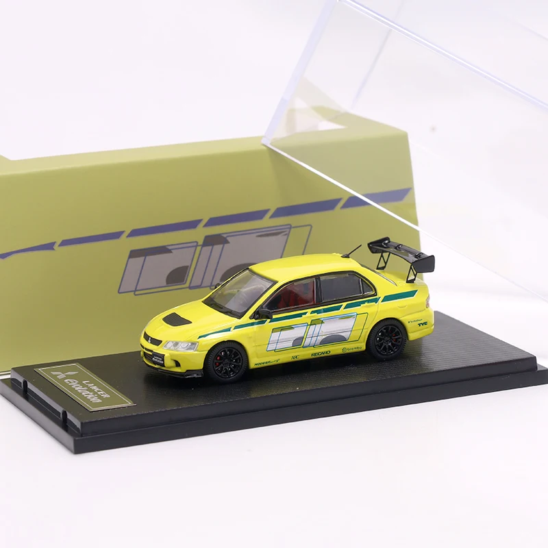Celebrate the thrill of motorsport with this stunning 1/64 scale diecast model of the Mitsubishi Lancer EVO IX. Crafted with high-quality metal, plastic, and rubber, this detailed replica captures the aggressive, sporty design of the racing legend. The vibrant yellow and striking red color options feature bold racing decals in white, blue, and black that highlight its dynamic racing livery. The sleek, aerodynamic silhouette is complemented by aggressive lightning bolt graphics and a prominent black rear wing spoiler, creating a high-performance aesthetic. The transparent windows reveal a finely detailed interior with contrasting seats, and its multi-spoke black wheels emphasize its race-ready look. This model is perfect for collectors and enthusiasts who appreciate meticulous craftsmanship and racing style.