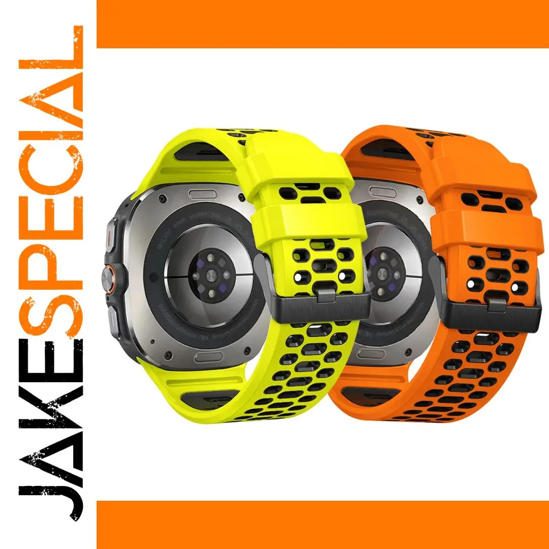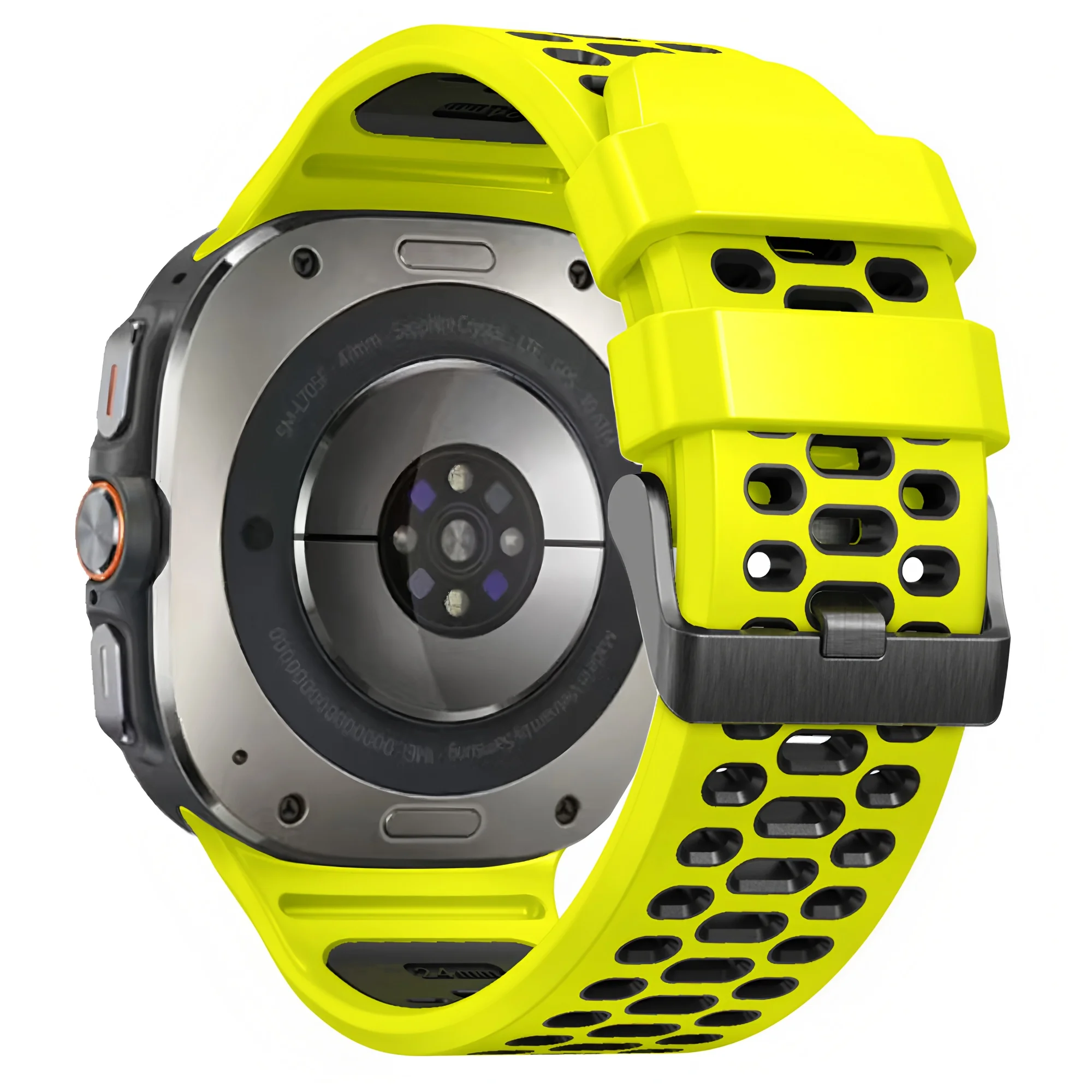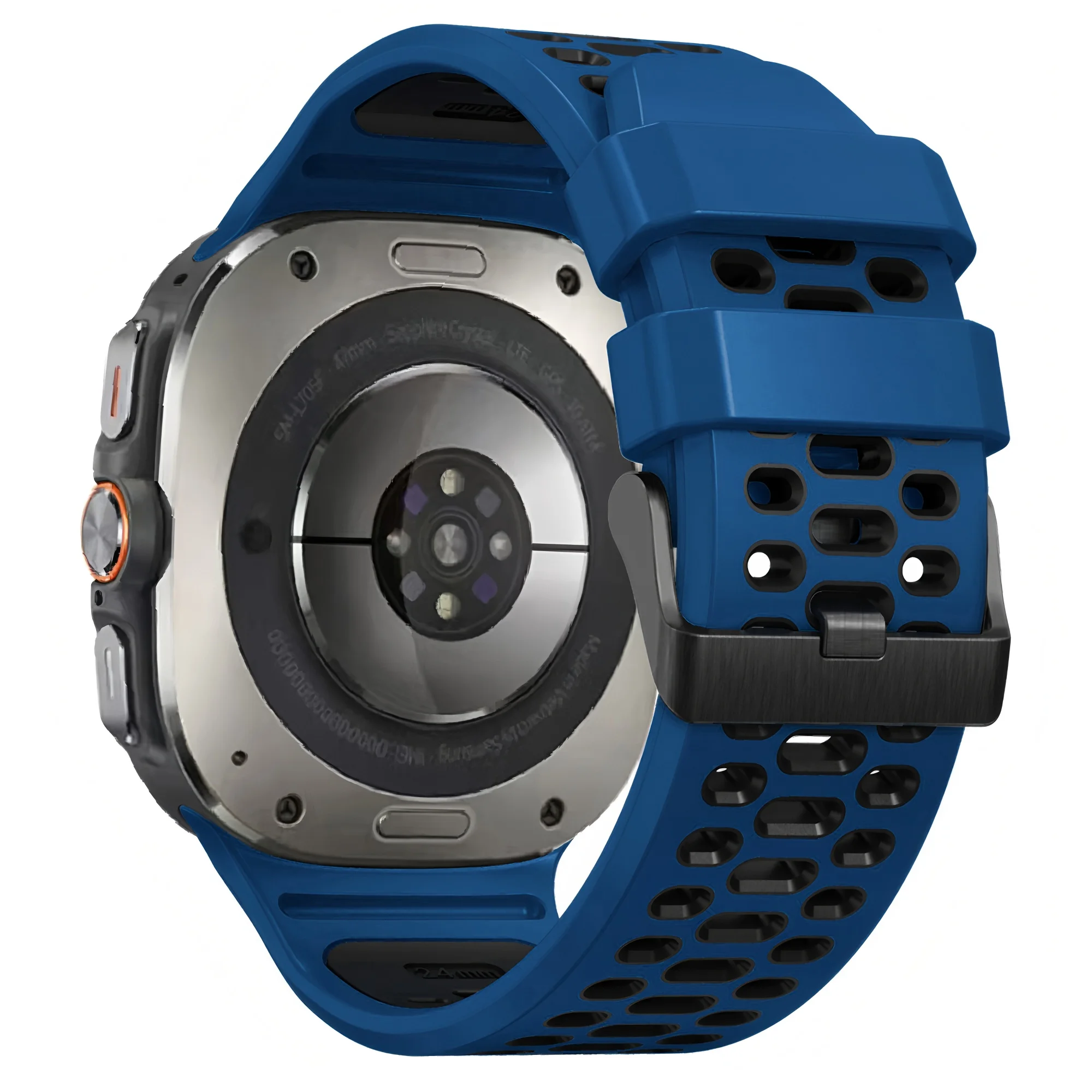 The Sport Two Tone Breathable Silicone Strap for Samsung Galaxy Watch Ultra is the perfect blend of style and functionality. Designed for the Samsung Galaxy Watch Ultra 47mm, this strap boasts a comfortable fit and a sleek modern look. Imagine effortlessly transitioning from workouts to casual outings, all while your wrist feels breathable and secure. With its black buckle clasp, you can trust it to stay in place during your most active days. Upgrade your accessory collection and experience the comfort that comes with a premium silicone strap tailored for your lifestyle.