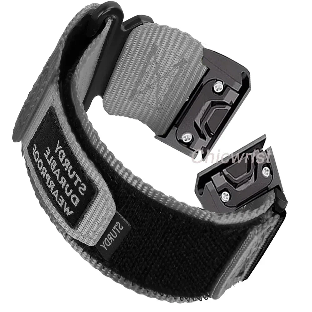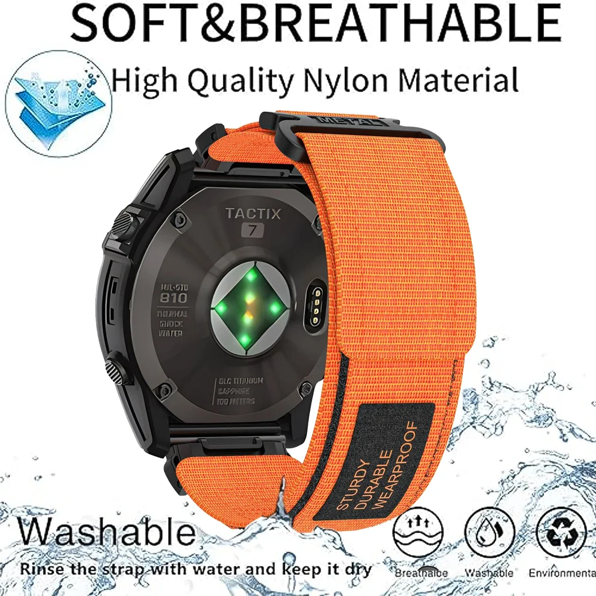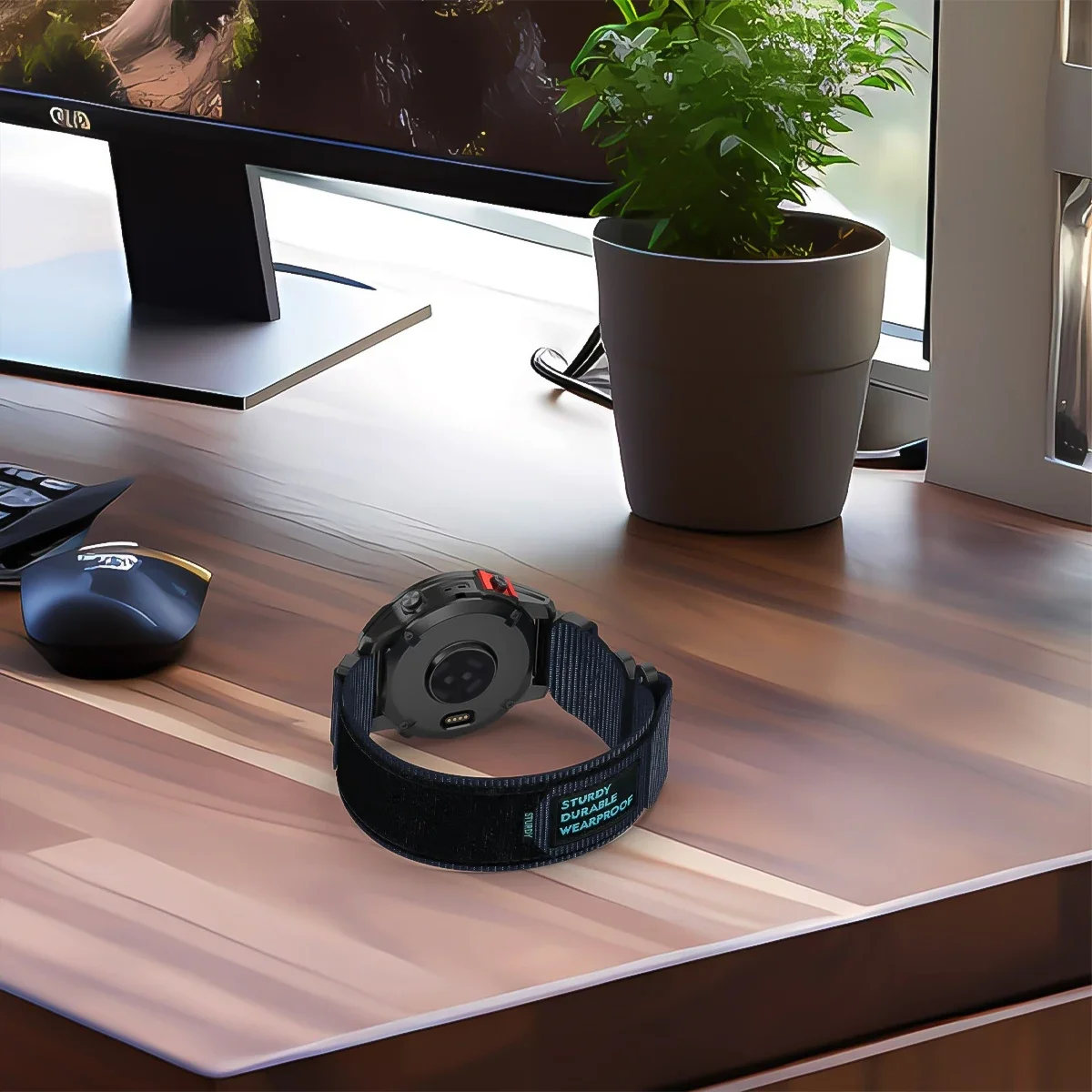 Enhance your Garmin watch experience with this durable nylon loop band, perfectly designed for models like Garmin Fenix 7X, 6X, 5X Plus, and Tactix 7 Pro. Crafted for comfort and longevity, this adjustable strap features a quick-release mechanism for easy swapping, making it ideal for active individuals who demand both style and practicality. Whether you’re hitting the gym, outdoor adventures, or everyday wear, this strap offers reliable performance and a secure fit. Available in 22mm and 26mm sizes, it seamlessly combines functionality with sleek design, ensuring your Garmin watch stays comfortable and stylish during all your activities.