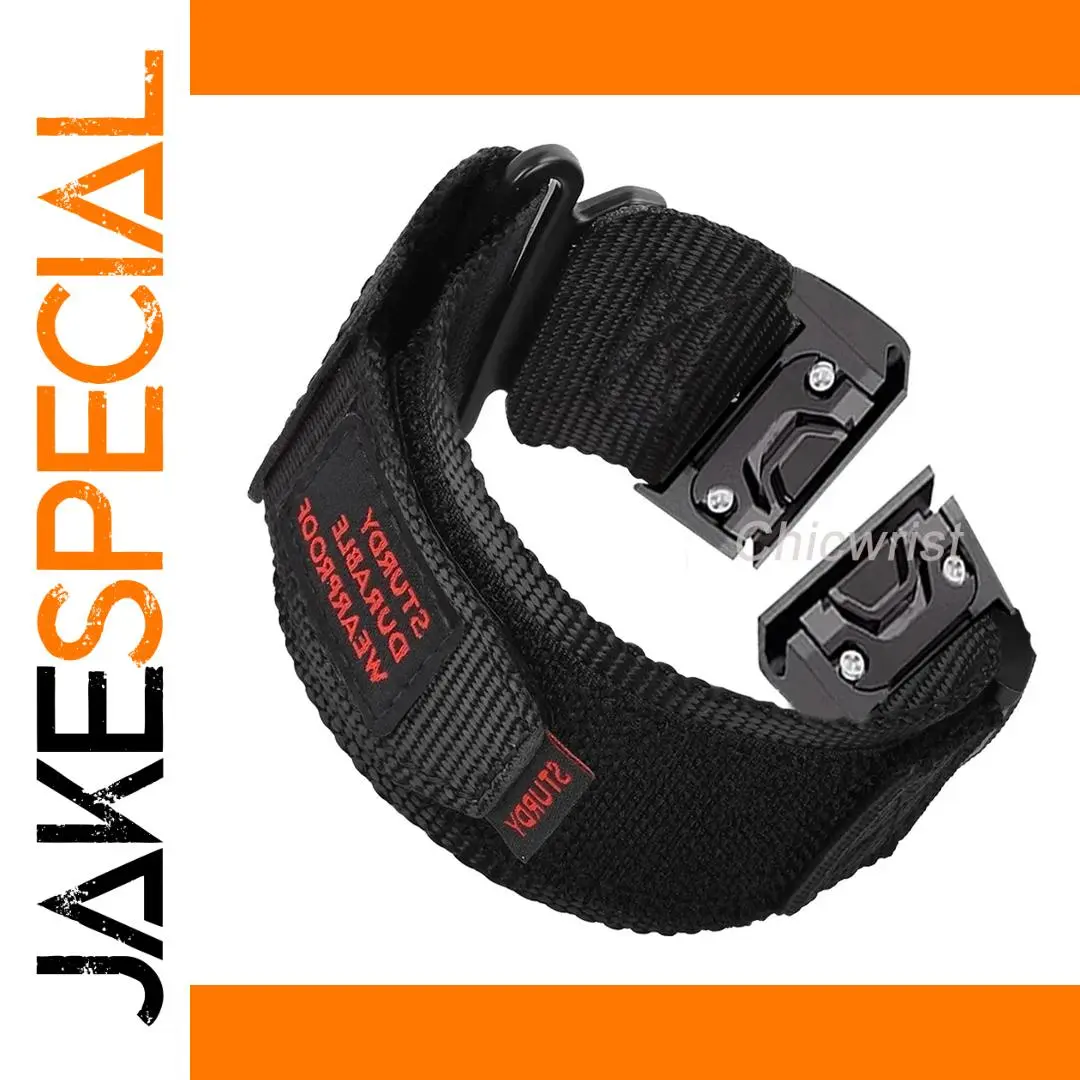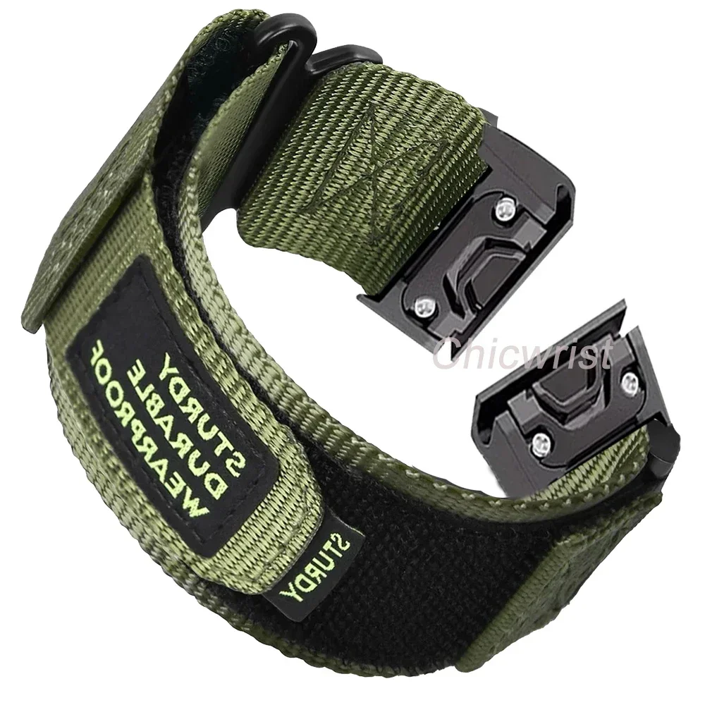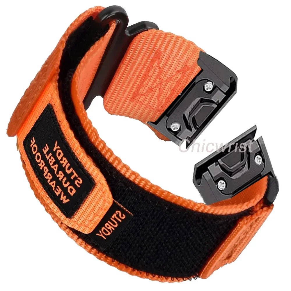 Enhance your Garmin watch experience with this durable nylon loop band, perfectly designed for models like Garmin Fenix 7X, 6X, 5X Plus, and Tactix 7 Pro. Crafted for comfort and longevity, this adjustable strap features a quick-release mechanism for easy swapping, making it ideal for active individuals who demand both style and practicality. Whether you’re hitting the gym, outdoor adventures, or everyday wear, this strap offers reliable performance and a secure fit. Available in 22mm and 26mm sizes, it seamlessly combines functionality with sleek design, ensuring your Garmin watch stays comfortable and stylish during all your activities.