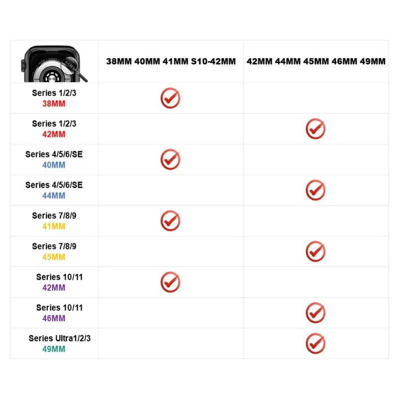 - Compatible with Apple Watch Series 7, 8, 9, 10, 11, SE, and Ultra models, sizes 38mm to 49mm, ensuring wide device coverage for a perfect fit.