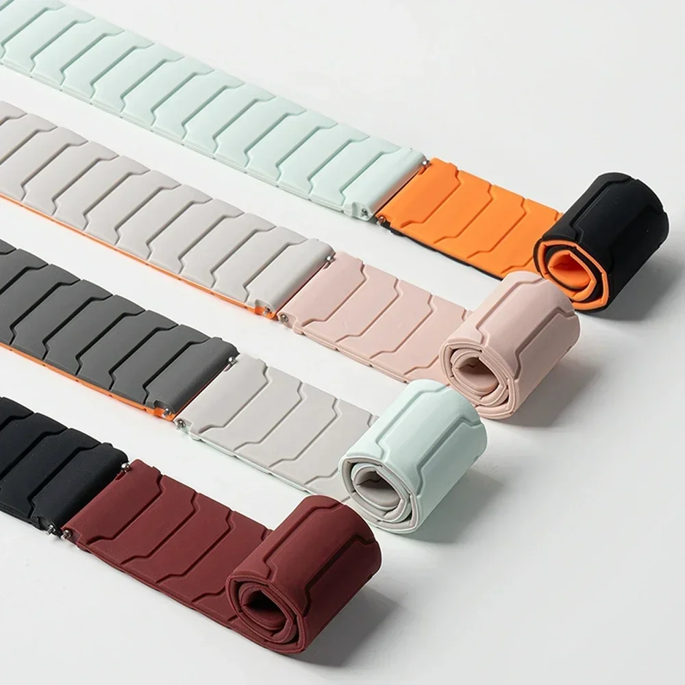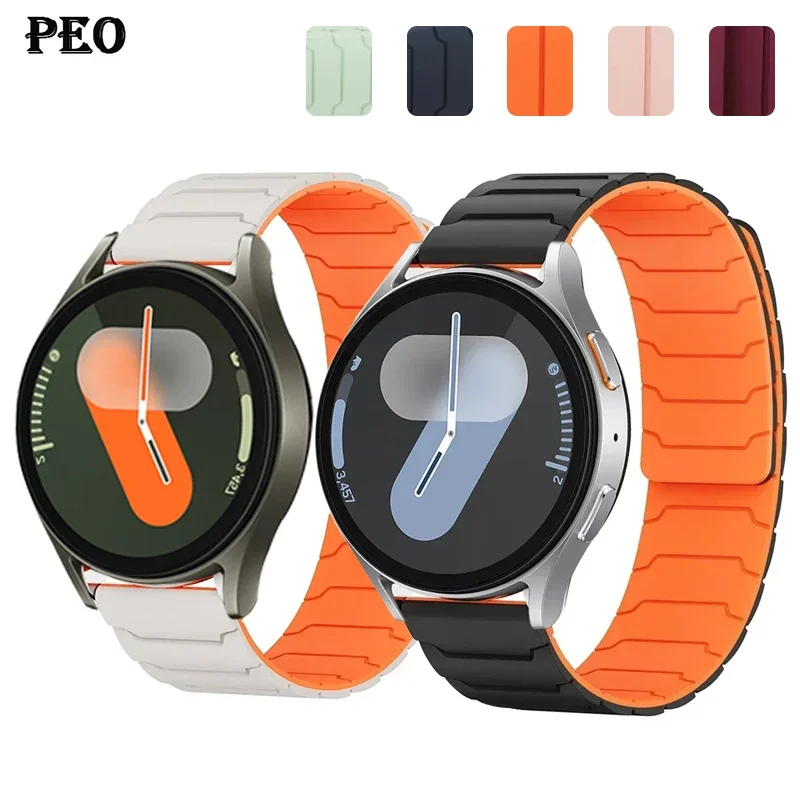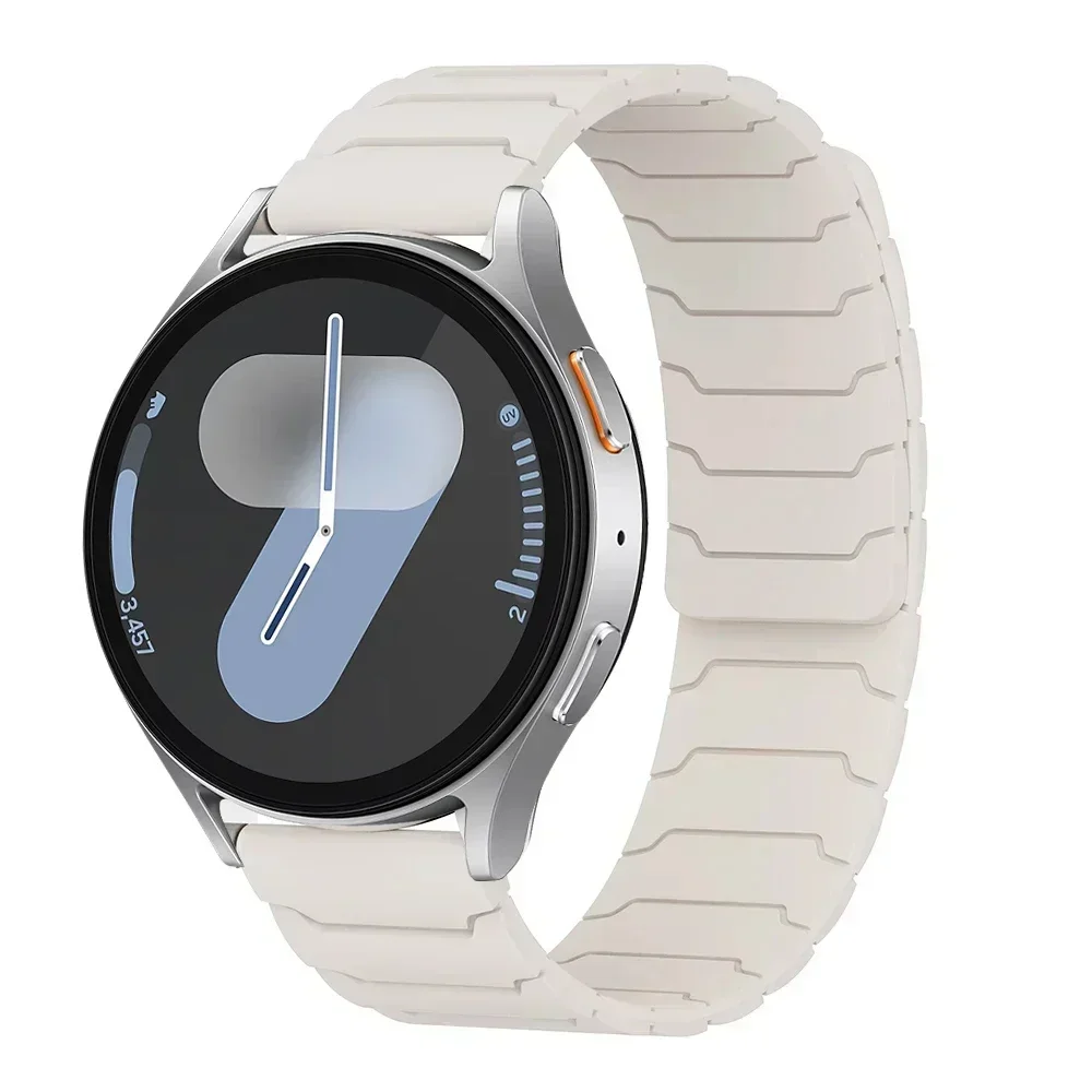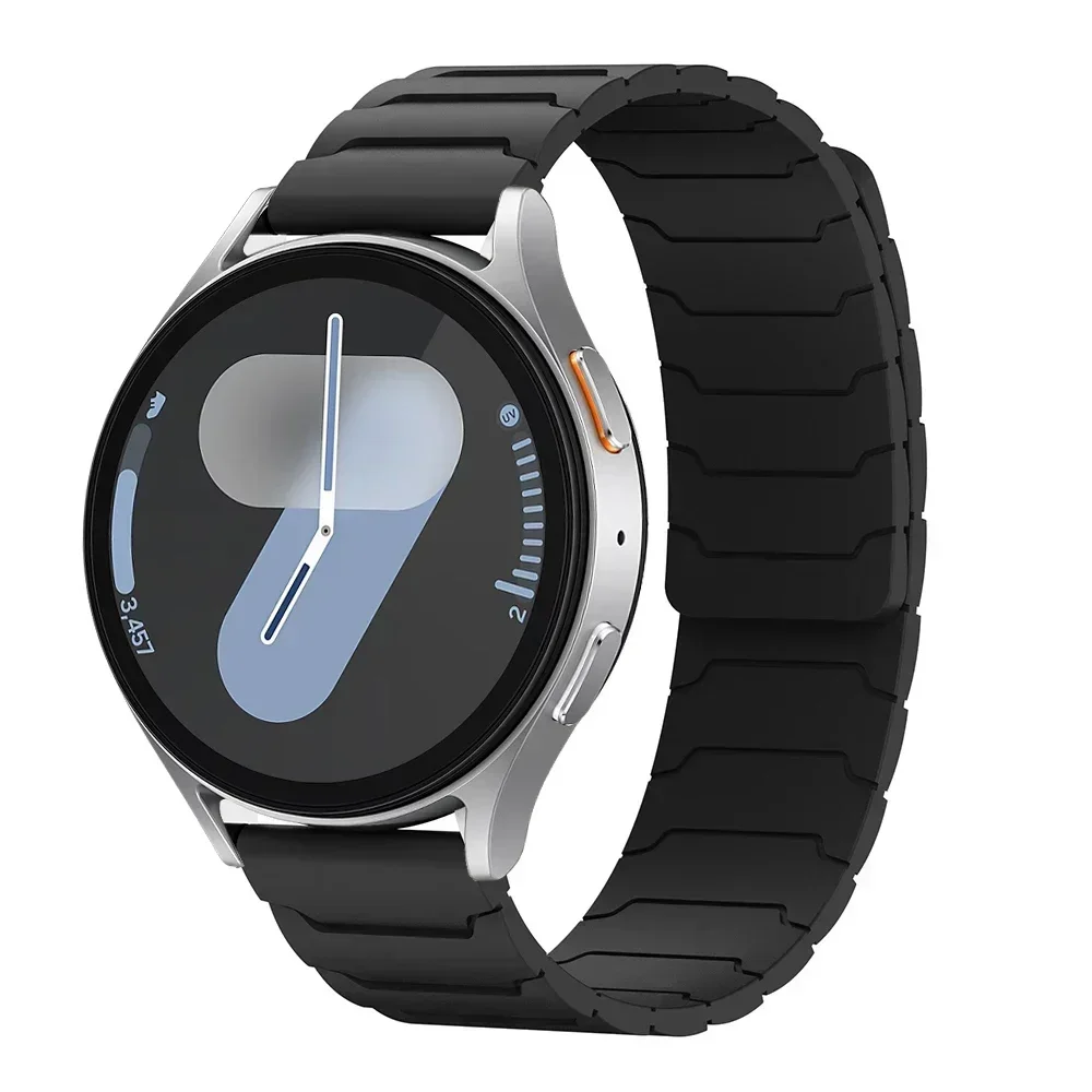 Upgrade your smartwatch with these versatile silicone straps compatible with Samsung Galaxy Watch 7/6/5/4 and Huawei GT5/4/3 Pro models, available in 22mm and 20mm widths. Designed with a modern ridged pattern, these unisex straps feature a smooth, flexible silicone surface and a convenient magnetic loop clasp for effortless attachment and removal. Choose from vibrant colors like Midnight Blue, Grey Orange, Starlight, Black, Light Orange, Black Orange, Mint Green, Powder, Mint Green Star, Starlight Powder, Claret, and Shallow Navy Blue to match your style. Made from high-quality, chemical-free silicone, these fresh, new straps ensure durability, comfort, and a sleek look for any occasion.