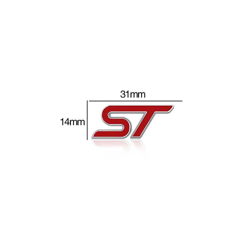 - It features the vibrant red “ST” logo with a silver outline, offering an eye-catching contrast that enhances your vehicle's sporty aesthetic seamlessly and stylishly.