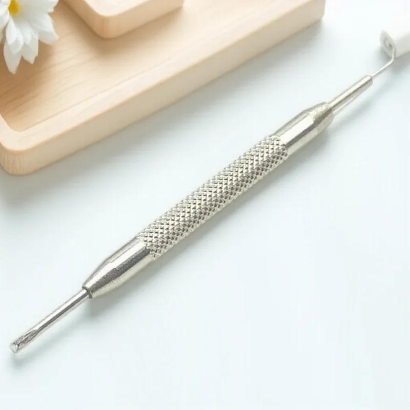 Experience effortless watch band maintenance with this high-quality, silver-colored spring bar remover. Crafted from durable steel, this tool measures approximately 8.1 centimeters in length and features a heavy, textured handle for a secure grip. Its sleek, cylindrical design combines a professional appearance with practical functionality. One end boasts a large fork with precise prongs, ideal for removing or installing spring bars in watch straps and bands. The reversible opposite end offers versatility, with either a small fork or a sharply pointed tip, enabling fine, detailed work like removing lug spring bars from metal bands' backside. Perfect for disassembly or assembly tasks, this tool helps you manage your watch collection confidently and efficiently.