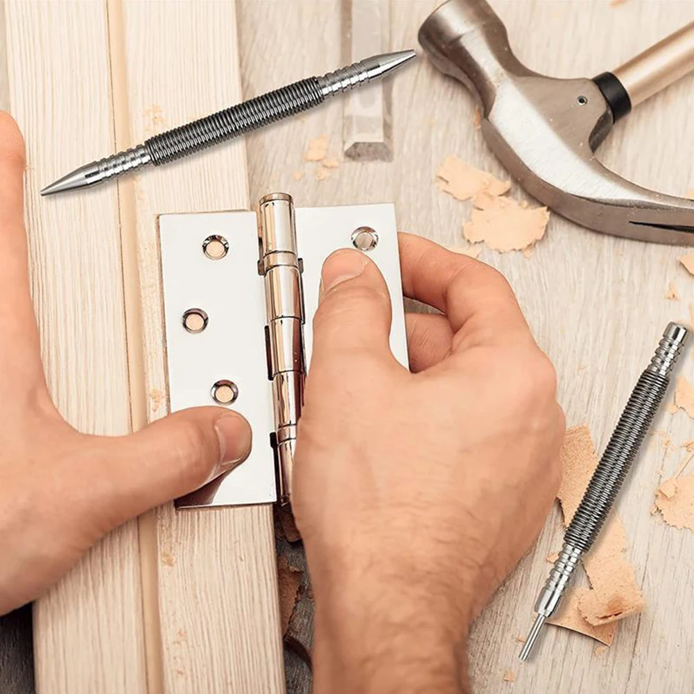 Imagine having the perfect tools in your hand for woodworking, home improvement, or repair projects. This set of two metal spring nail setters offers exceptional durability and versatility, allowing you to accomplish tasks with confidence. Crafted from heat-treated carbon steel, these tools resist deformation and withstand heavy impact forces of up to 3500 PSI. The dual-head design includes 1/16 inch and 1/32 inch tips, providing flexibility to handle various nail sizes and materials efficiently. Their polished, shiny silver finish and ergonomic ridged handles give a professional look while ensuring a secure grip. Whether setting small brads, starting screw holes, or removing hinge pins, these tools will elevate your craftsmanship.