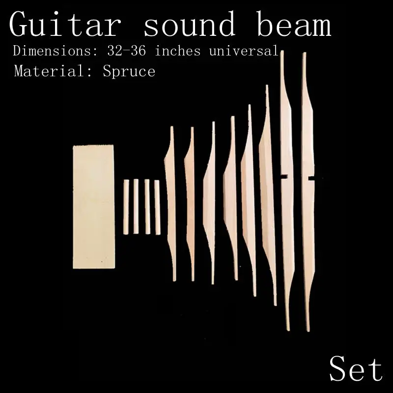 - Includes a variety of precisely shaped braces: triangular, circular arcuate, and complex curved profiles for versatile application in guitar construction.