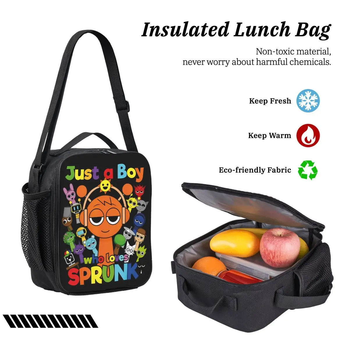Imagine your child stepping into preschool with the joyous Sprunki Just A Boy Backpack Set! This delightful collection features a backpack, lunch box, and pencil case, all radiating fun and vibrancy. The main black fabric serves as a canvas for playful cartoon artwork, depicting a cheerful character with orange hair and headphones, surrounded by a colorful assortment of smaller figures. Ideal for sparking creativity, these items are crafted from durable Oxford fabric for lasting use in a preschool environment. With its lively aesthetic and practical design, this set will surely become your child's favorite!