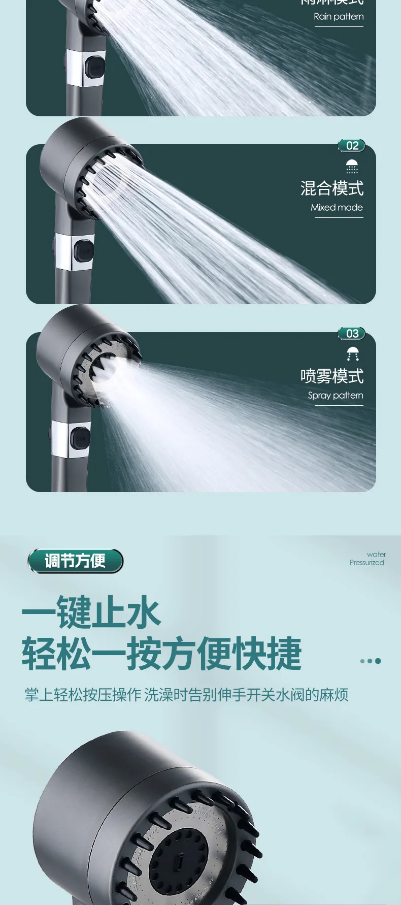 - Features a 3-mode adjustable spray with massage function for personalized comfort during showers.