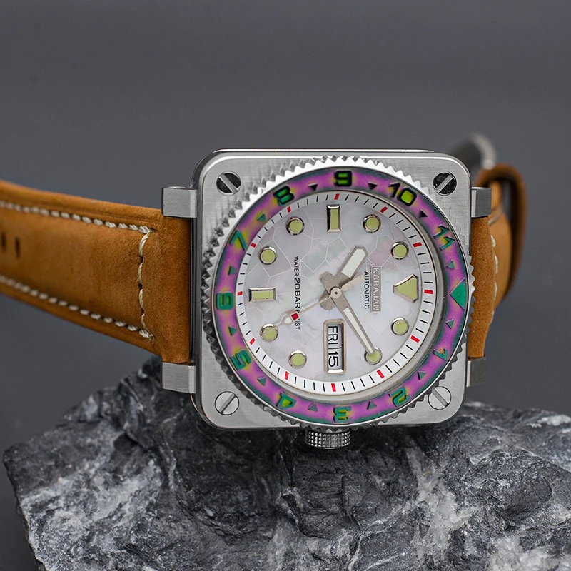 - Features a sapphire crystal glass protecting the dial, paired with a transparent case back that reveals the precise Japan NH35 or NH36 automatic self-winding movement.