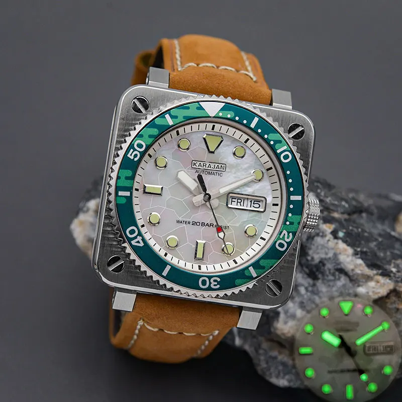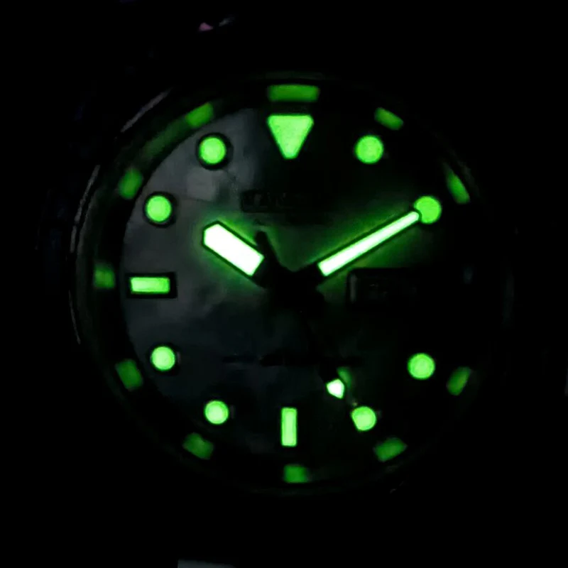 - Equipped with large, green-luminous hour markers and hands made with C3 super luminous powder, providing high visibility and glow in darkness for reliable readability at night.