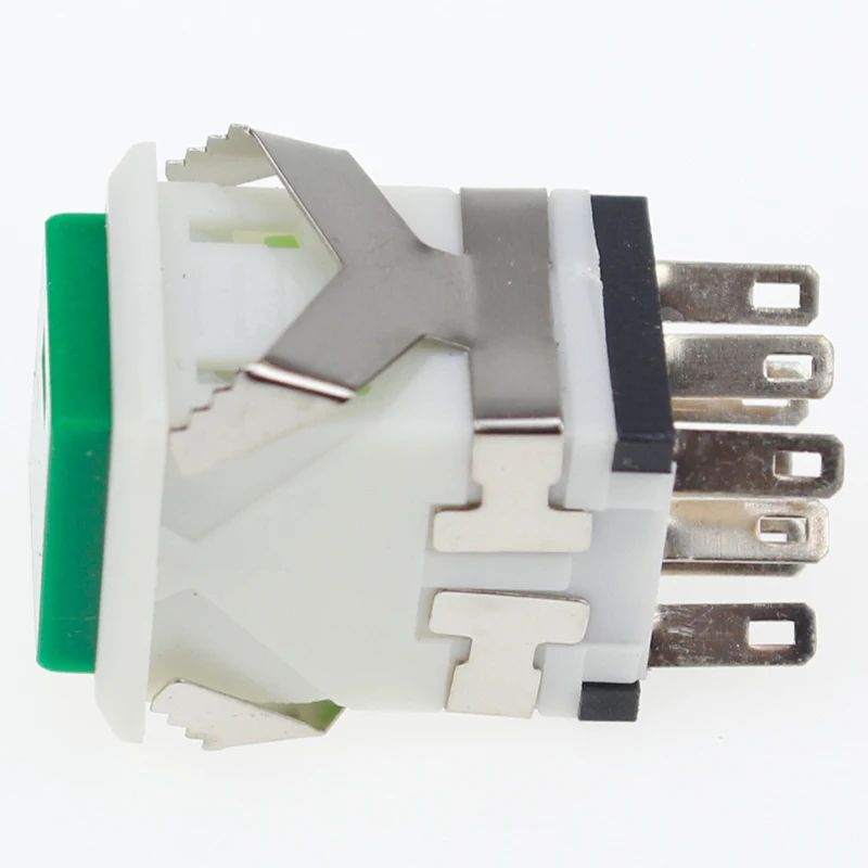 Experience the seamless integration of this high-quality square push button switch in your electronic and electrical applications. Designed with a sleek, minimalist style, it features a durable plastic body with a matte finish and a prominent square head in vibrant green and red, making it visually appealing and easy to operate. Its compact size of 17.2×17.2mm ensures a neat fit into your devices. Whether you need momentary or locking functionality, this switch provides reliable contact switching with 2 NO and 2 NC contacts rated for 3A at 250V and 6A at 125V. Inside, nickel-plated brass contacts guarantee longevity, while the integrated red LED operates at 1.5V, adding visual cues. Versatile and durable, it’s suitable for automation, machinery, computing, and more.