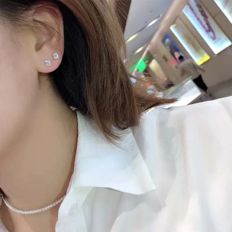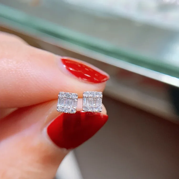 Square Zircon Silver Earrings for Women