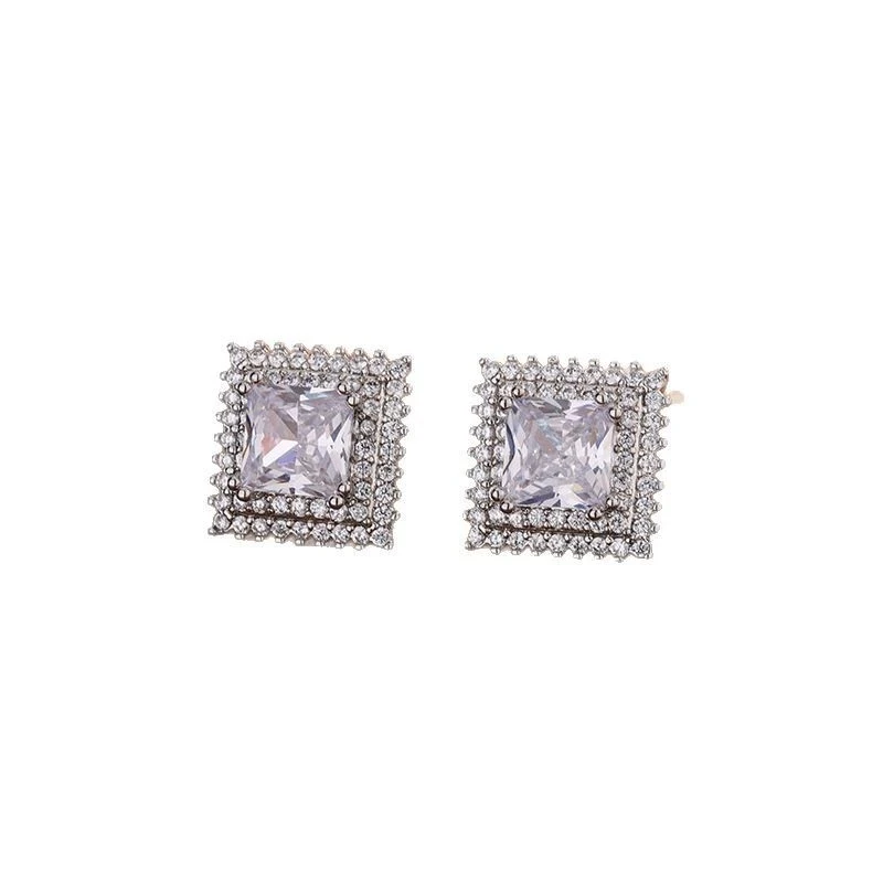 Experience timeless sophistication with this pair of this elegant square zircon stud earrings. Crafted from high-quality 925 silver and finished with a polished shine, these earrings feature a striking central zircon in a princess cut, designed to sparkle brilliantly with multiple facets. Surrounding the main stone is a border of smaller, shimmering zircon stones arranged in a precise square pattern, creating an intricate layered effect. Weighing approximately 2 grams each, these versatile earrings blend classic style with contemporary elegance, making them perfect for any occasion—from casual gatherings to glamorous parties and weddings. Their durable, lightweight design ensures comfortable wear all year round, elevating any outfit with a touch of luxury and charm.