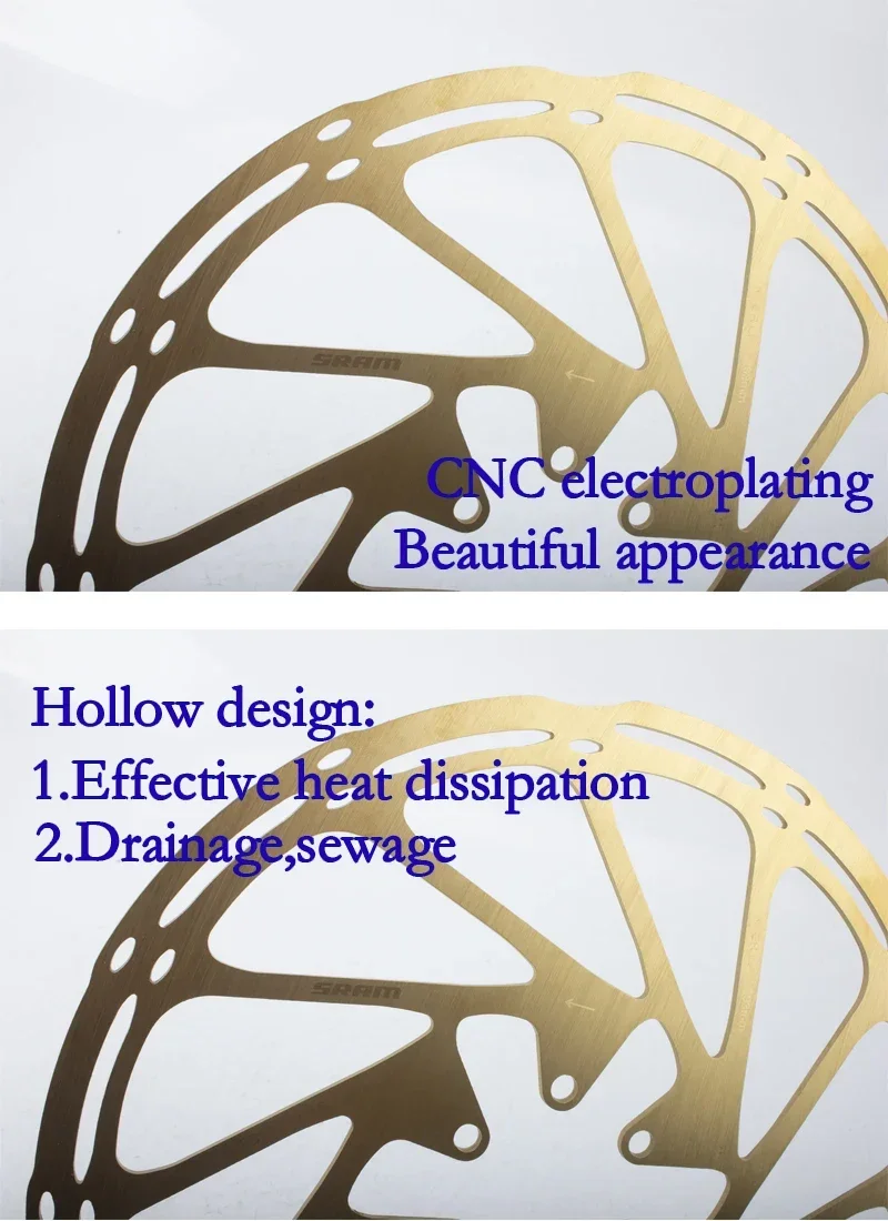 Transform your bike with these premium Sram Avid bike brake rotors that combine both functionality and style. Experience confident stopping power and a sleek gold finish that will have you riding in both performance and style. Don't miss out on this chance to upgrade your bike; your rides will thank you!
