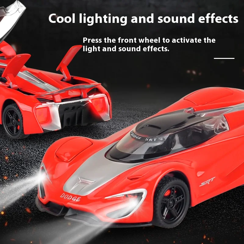 Experience the thrill of the racetrack with this stunning 1/32 scale metal die-cast model of the SRT Tomahawk Track Edition. Adorned in a striking white body with crimson accents, this model showcases sleek aerodynamic lines, a distinctive rear wing, and the bold number “93” alongside “DODGE SRT” branding on the hood. The transparent cockpit reveals intricate interior details, while black wheels with red detailing enhance its sporty look. Enjoy interactive play with sound and light functions powered by a button battery. Choose from three captivating color options: boxed yellow, boxed white, or boxed black. Perfect as a collector’s item or an ornament for any occasion.
