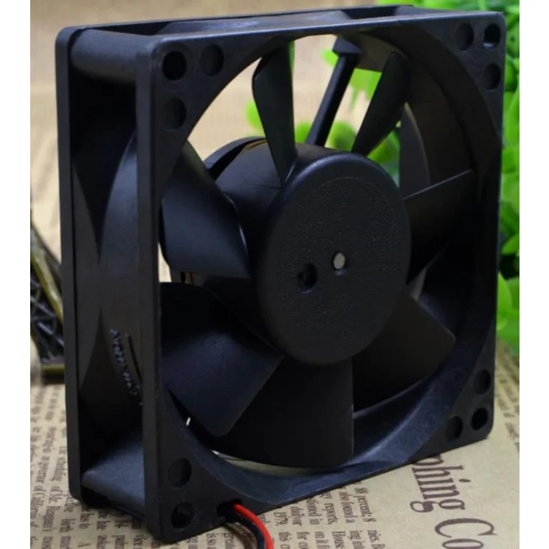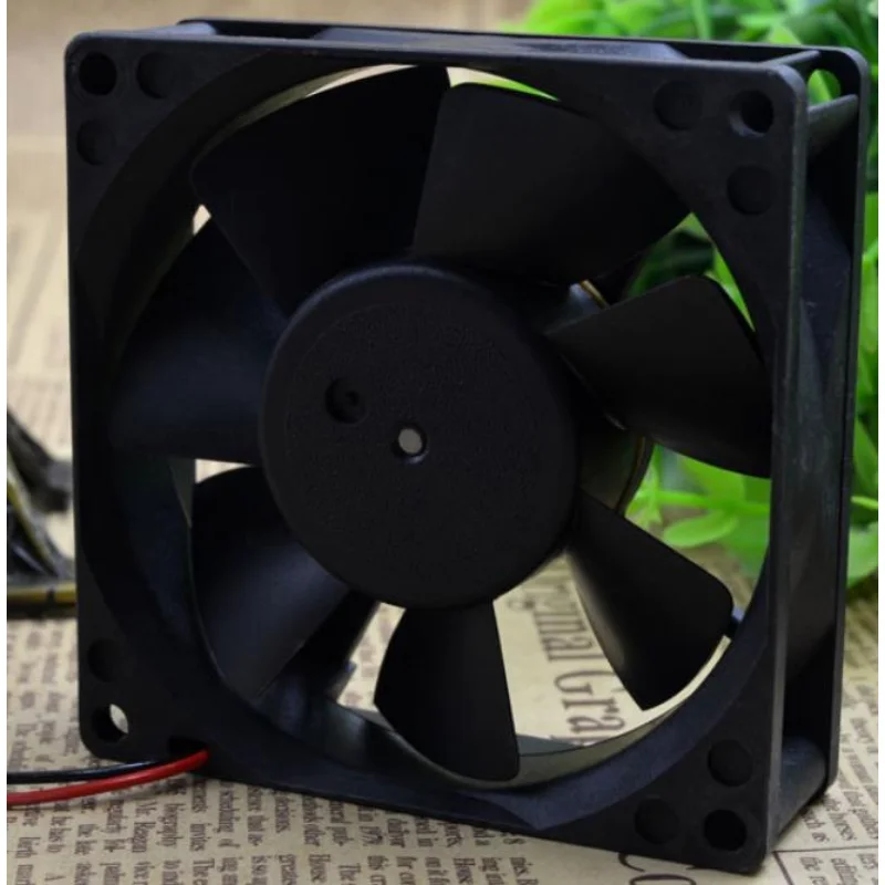 - This black, 80x80x25mm fan features seven curved blades designed for optimal airflow and quiet operation within encrypted computer cases or cooling systems.