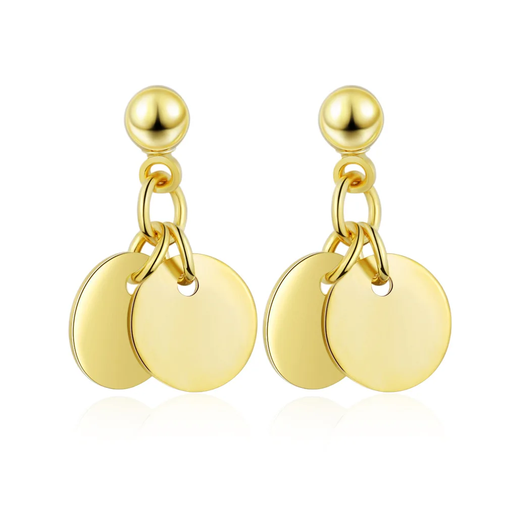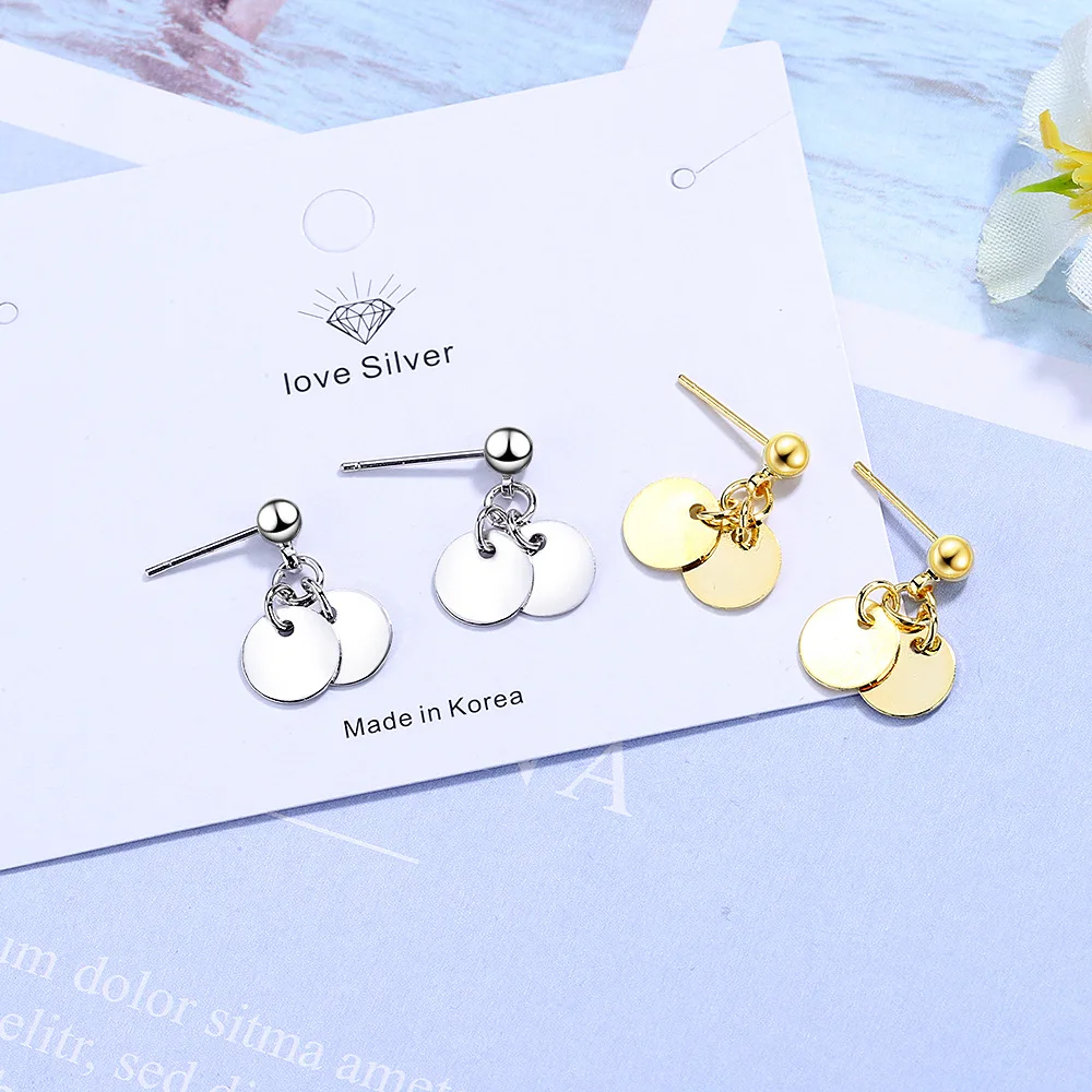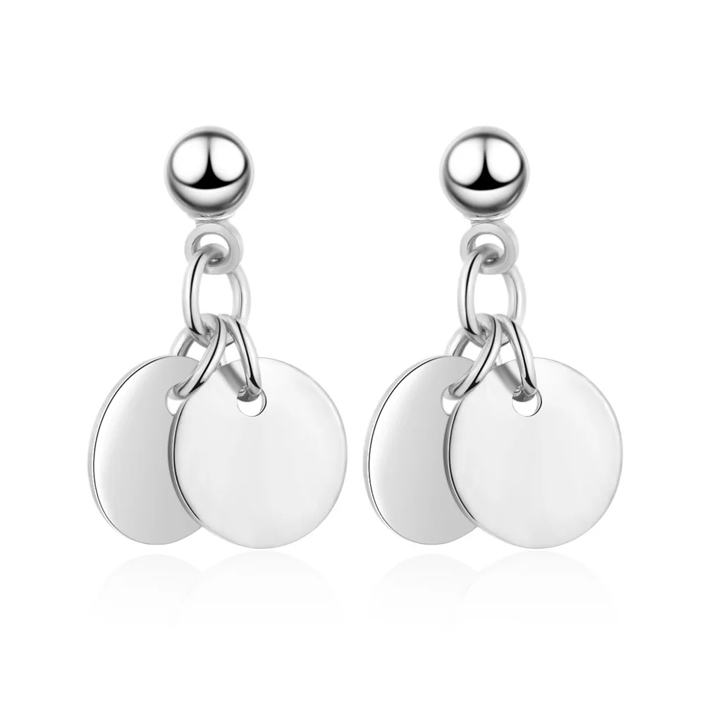 Elevate your style with these stackable, drop-style earrings crafted from 925 sterling silver, available in elegant gold or silver tones. Featuring sleek, geometric round discs with a polished finish, these lightweight earrings showcase a modern yet vintage aesthetic, perfect for both office and casual wear. Adorned with sparkling cubic zirconia accents, they dangle gracefully from small, polished studs, adding a touch of sophistication to any outfit. Designed for women who appreciate refined jewelry, these versatile earrings combine minimalist elegance with a contemporary edge, making them an ideal accessory for daily wear or special occasions.