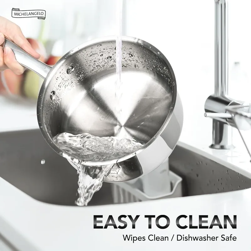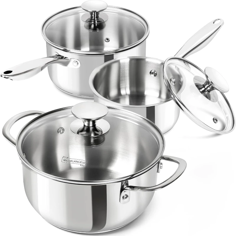 - Made from 18/10 stainless steel with an aluminum core, the pots heat quickly and evenly, reducing hot spots and ensuring consistent results across gas, electric, induction, ceramic, and glass cooktops.