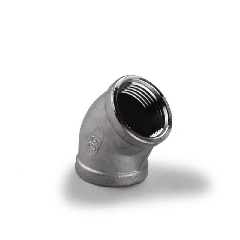 Invest in this stainless steel 45-degree elbow fitting for a reliable, long-lasting connection in your plumbing installations. Its formidable construction and precise threading give you confidence in secure, leak-free performance. Whether upgrading existing systems or building new ones, this fitting ensures your pipes remain well-connected under demanding conditions. Acting as a crucial component, it guarantees optimal flow and system stability. Make this intelligent choice now and enjoy durable, corrosion-resistant piping that stands the test of time. Experience seamless performance—add this elbow to your order today!