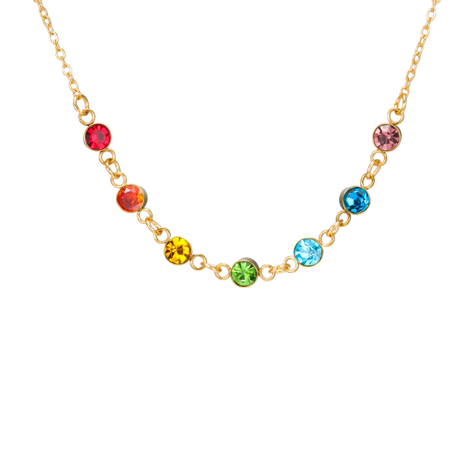 Imagine elevating your everyday look with this stunning 7 Chakras Rhinestones Pendant Necklace. Crafted with high-quality stainless steel, it features vibrant, colorful rhinestones representing the seven chakras, set in a sleek vertical line for a luminous, energetic appeal. Available in a beautiful 18k gold-plated finish or shiny steel, it combines durability with sophisticated style. The delicate 45-50cm link chain ensures comfort while making a bold fashion statement. Its minimalist design enhances any outfit, whether for casual wear or special occasions, and the sparkling rhinestones add a touch of vibrant energy to your spiritual and fashionable expression. This necklace is perfect to accompany your daily energy rituals or to simply enjoy as an elegant accessory.