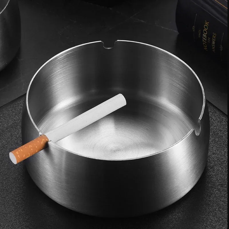 This sleek stainless steel round ashtray for style
